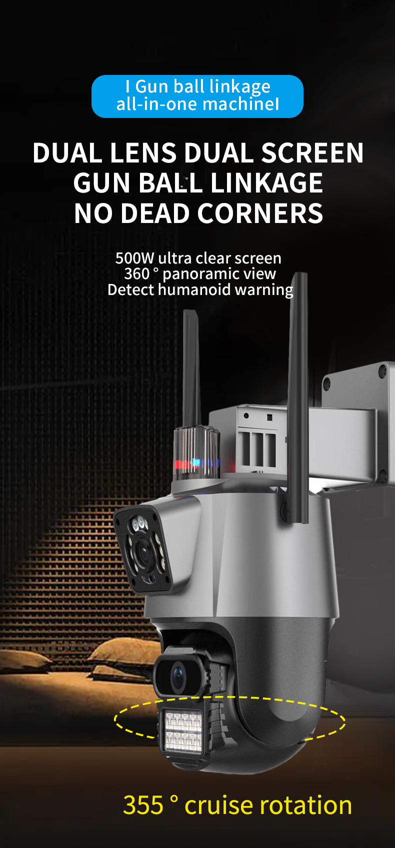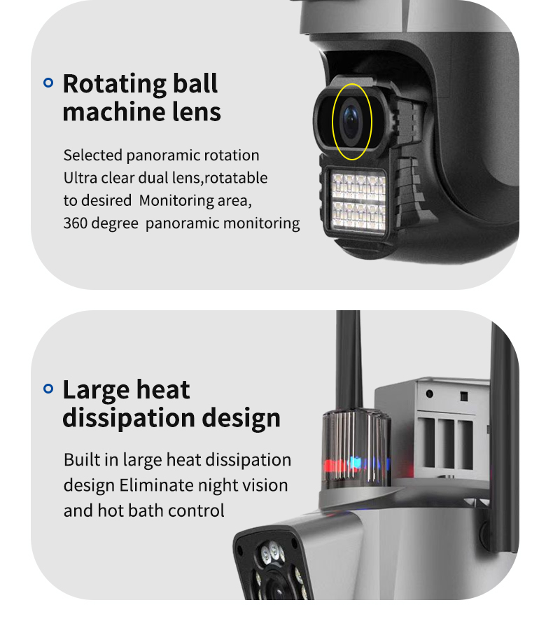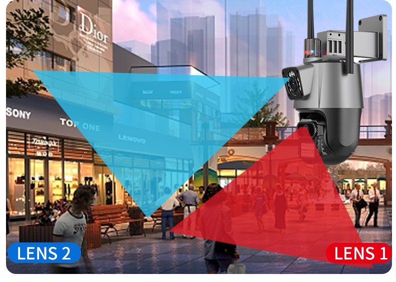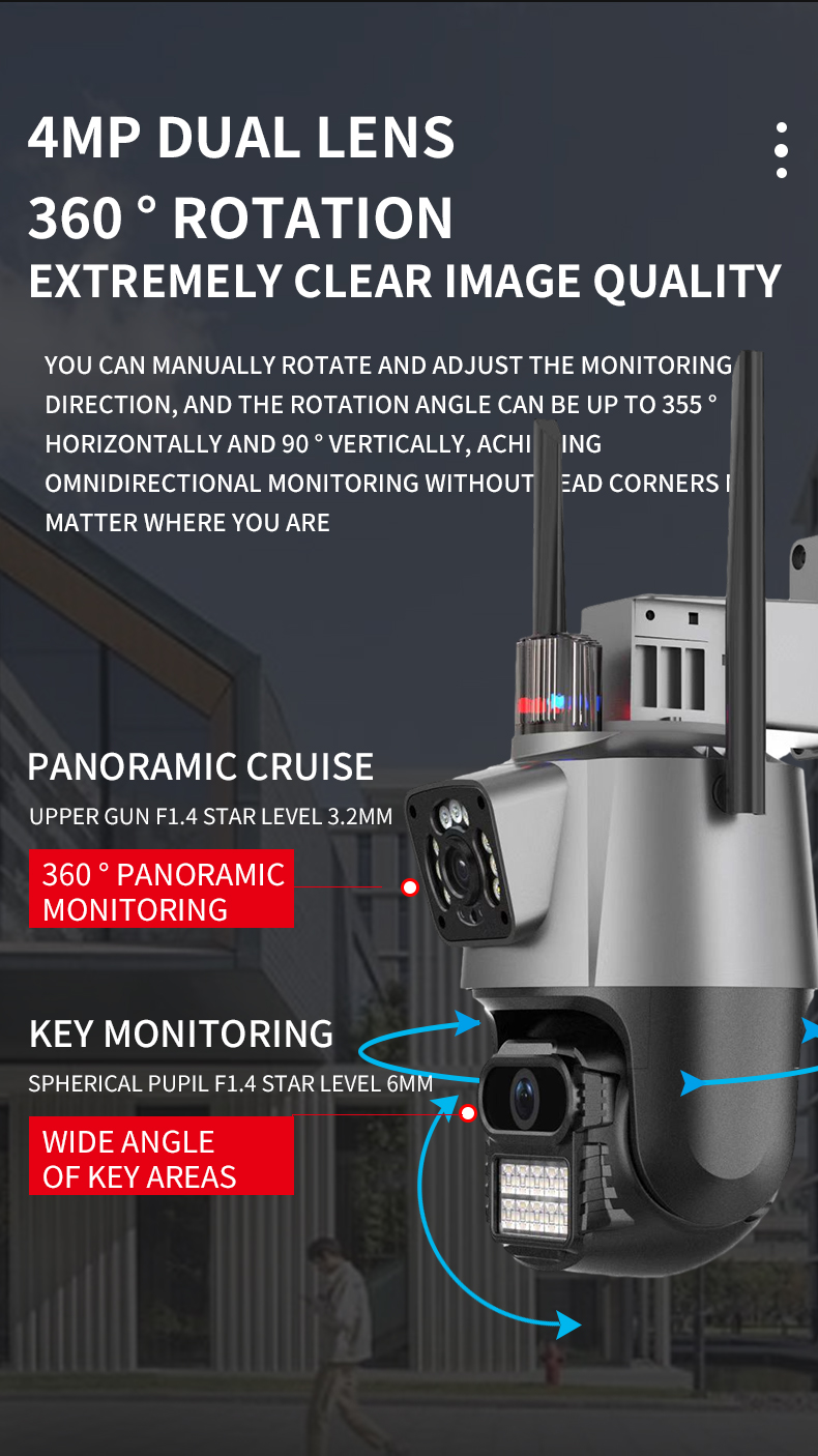-Двойной объектив с двумя датчиками, двойной экран, широкоугольный обзор + Просмотр на большом расстоянии для достижения четкого мониторинга издалека и вблизи;