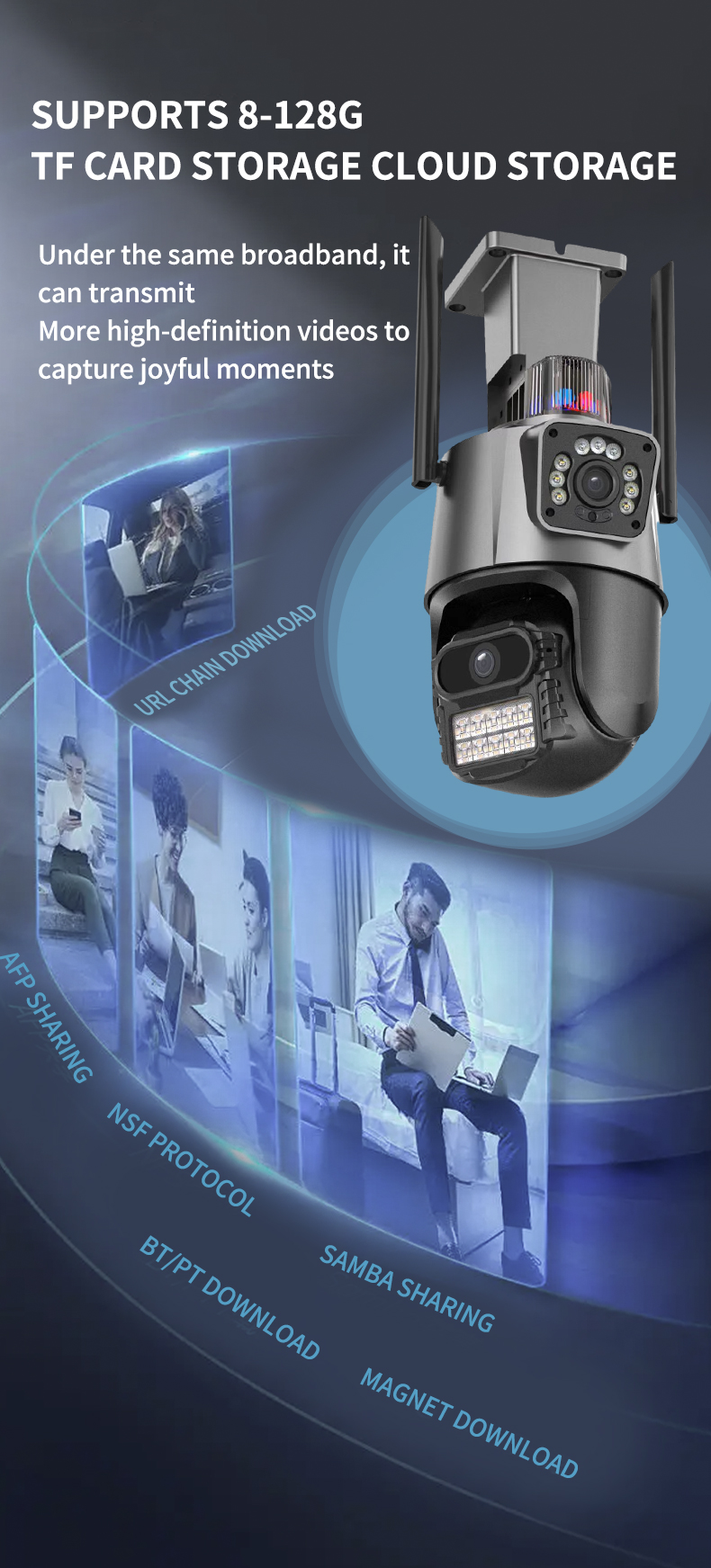 -Двойной дизайн источника света, встроенный инфракрасный свет + белый свет, инфракрасное ночное видение и полноцветное ночное видение;