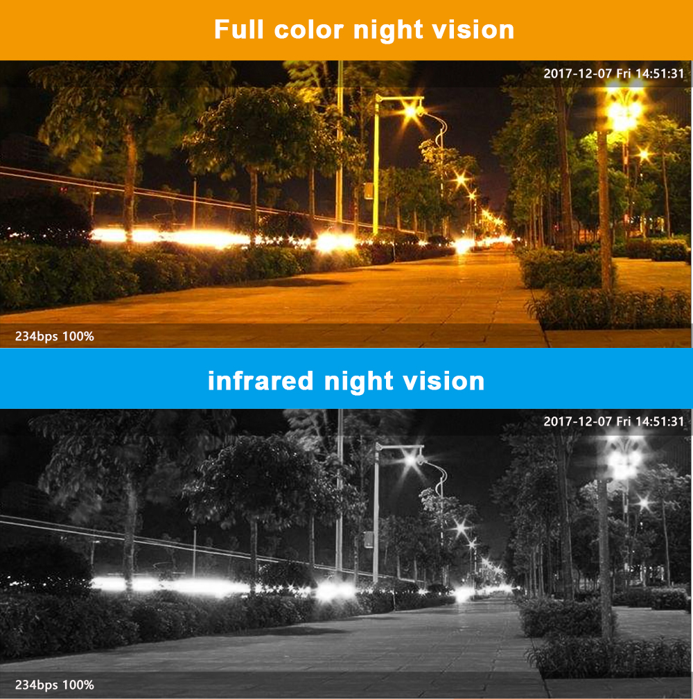 Переключайтесь в режим «ночного видения полного цвета», камера работает с четырьмя белыми лампами, экран монитора-Полноцветная картинка, картинка настоящая и может шокировать вора, эффект дня-это цветная картинка.