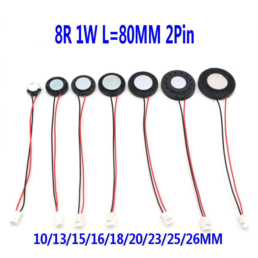 8 Ом, 1 Вт, диаметр 10/13/15/16/18/20/23/25/26 мм, L = 80 мм, громкий динамик, Ультратонкий маленький динамик, зуммер, круглый пластиковый внутренний магнит