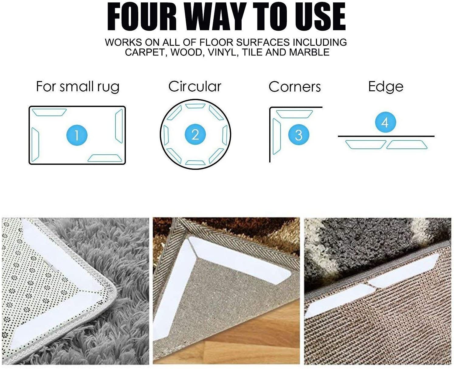 • Практичность: Идеально подходит для захвата ковра, предотвращения движения и скольжения ковра, предотвращения скольжения детей и взрослых, обеспечения безопасности для вашей семьи.