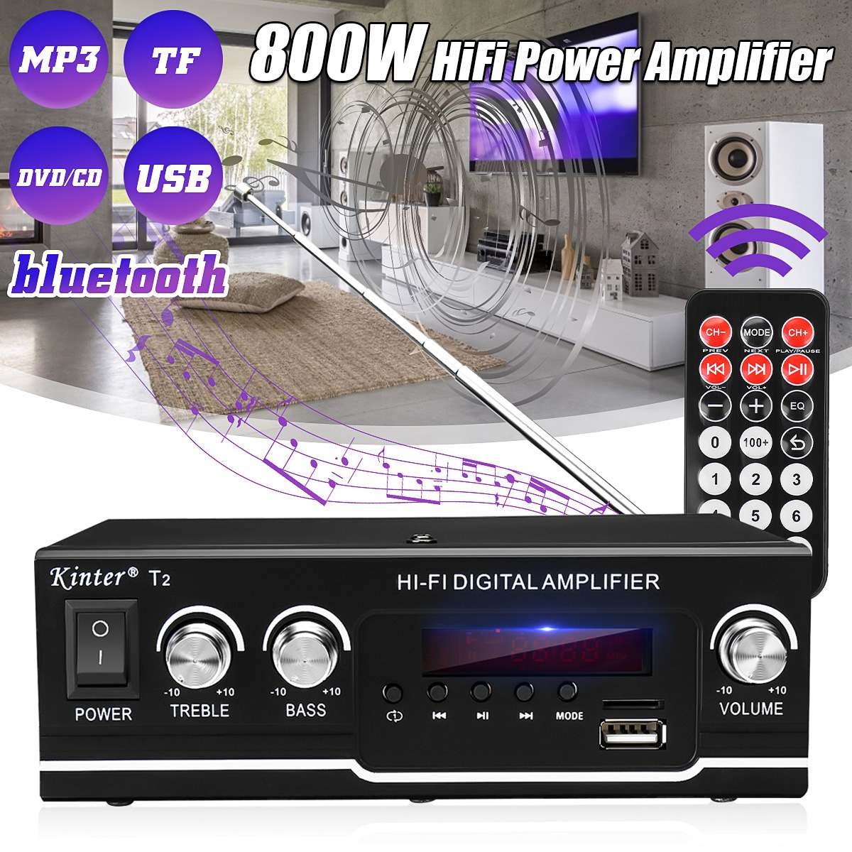 800 Вт HIFI Bluetooth усилитель мощности для автомобиля/домашнего кинотеатра Цифровой усилитель мощности аудио для акустическая система ВЧ басов управление FM USB SD