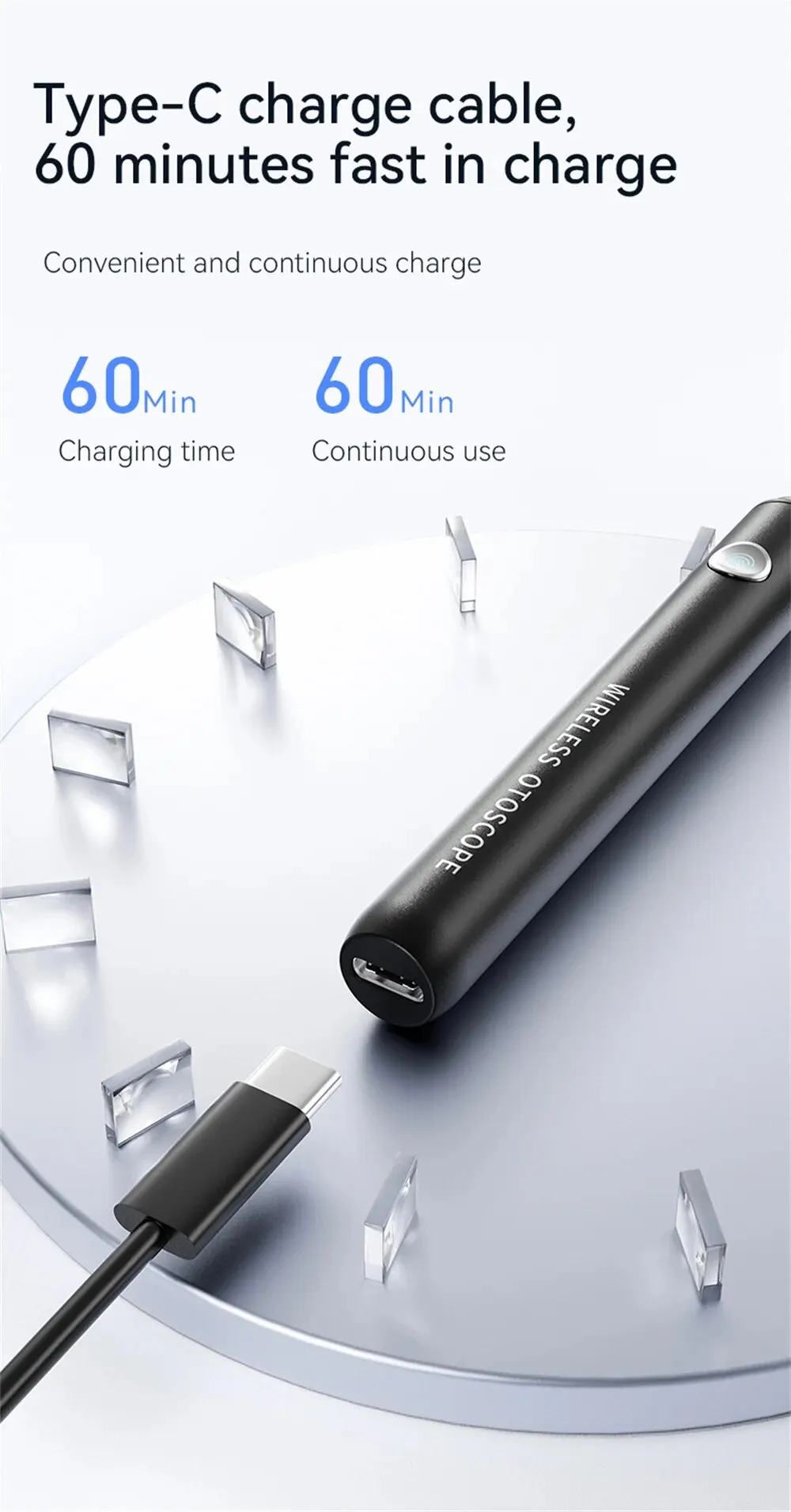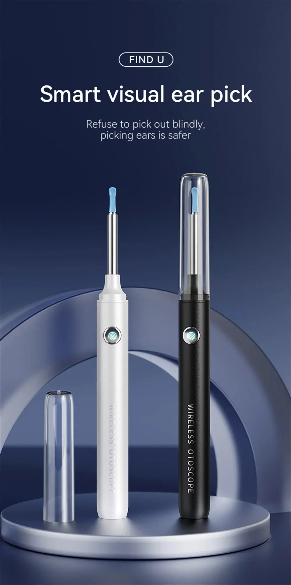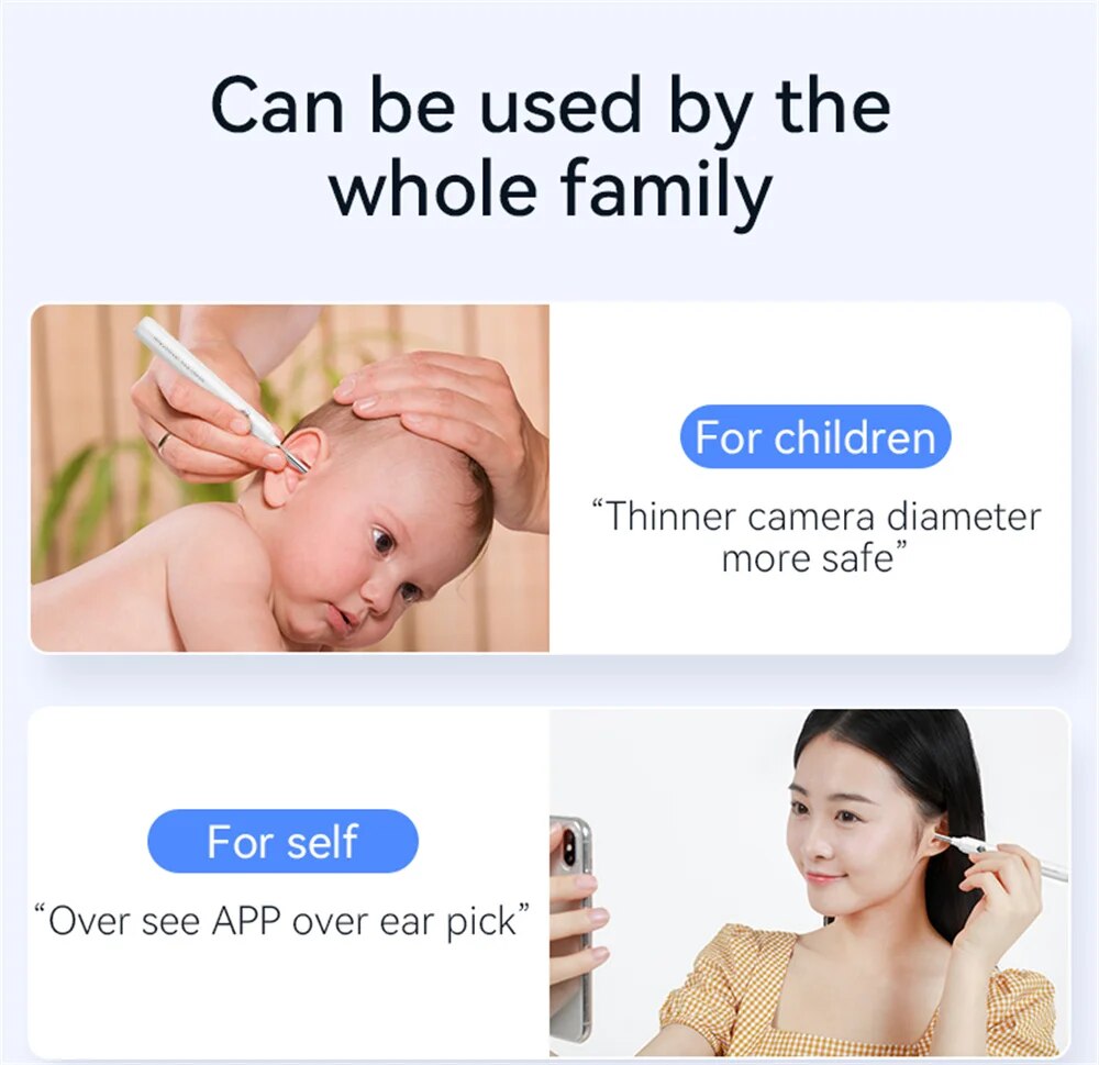 [Мобильное решение для чистки ушей]: Беспроводное соединение Wi-Fi и универсальная совместимость этого инструмента для чистки ушей делают его мобильным решением.