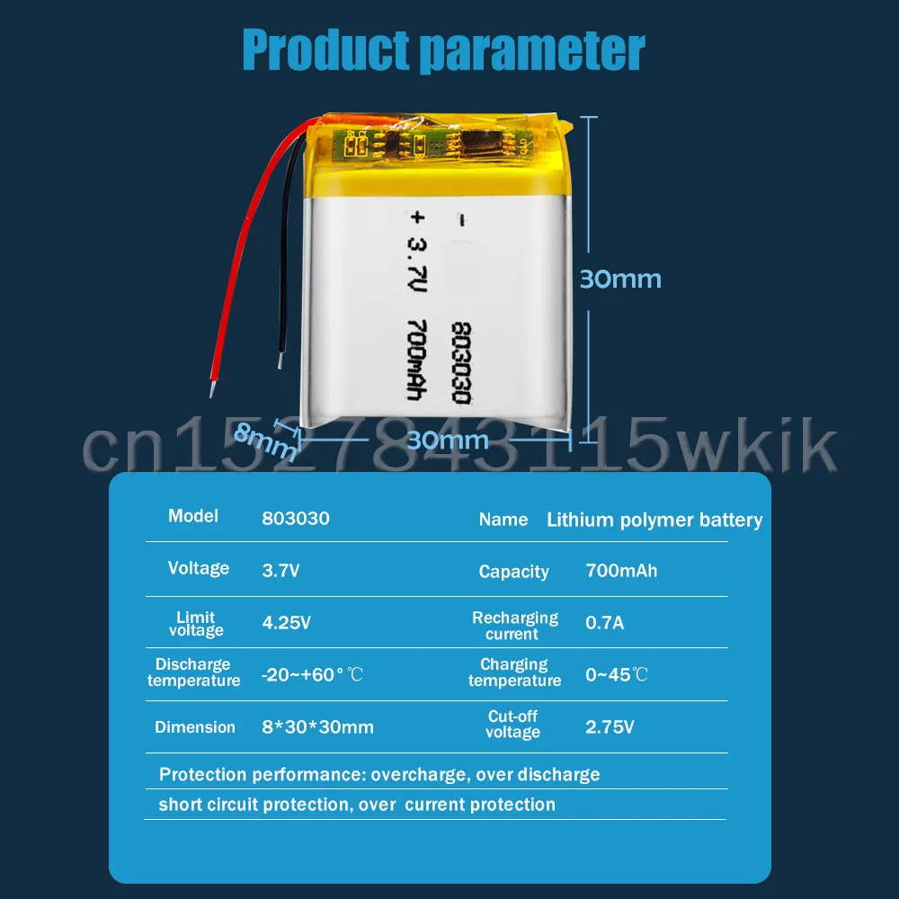 803030 3,7 В 700 мАч литиевая полимерная аккумуляторная батарея литий-ионный аккумулятор для смарт-часов GPS Светодиодный с подсветкой MP3 MP4 PDA массажер 083030