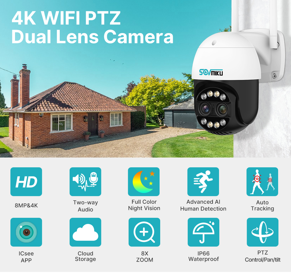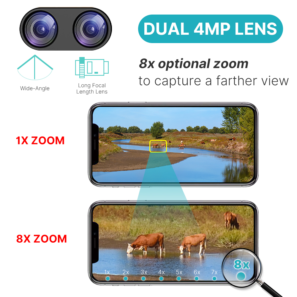 Двойной объектив и высокий пиксель для более четких изображений. Наша камера оснащена двумя 4-мегапиксельными (2MP) объективами, 2 объектива могут обеспечить лучшее изображение, более четкое, чем традиционные 4MP (2MP) .