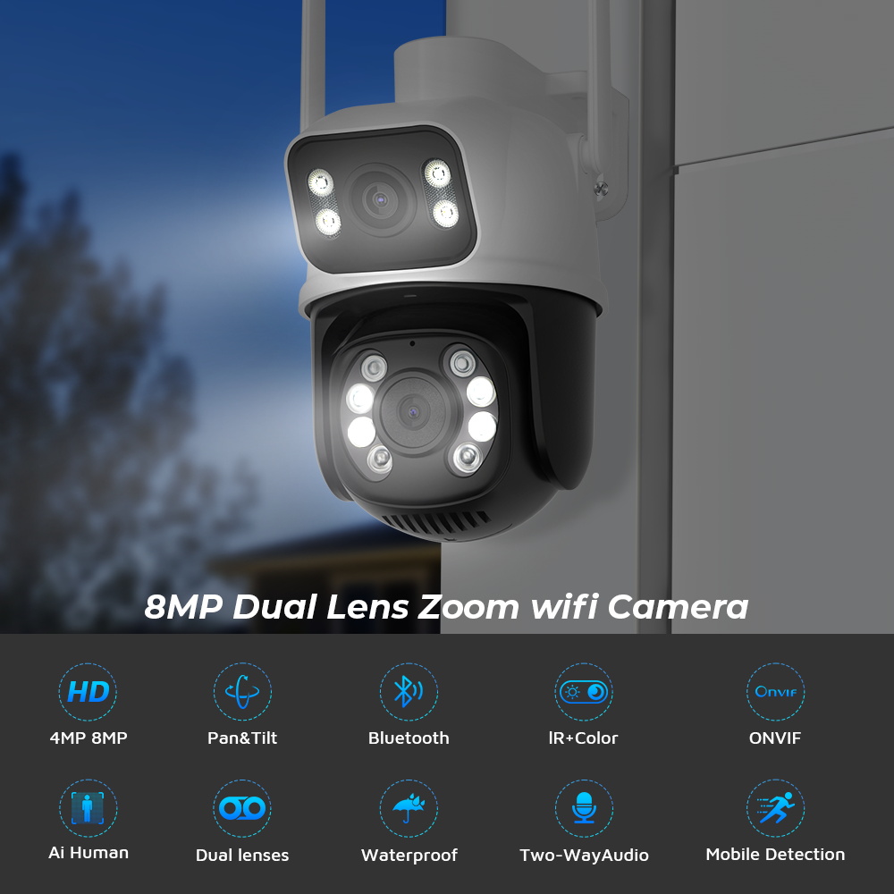 8MP 4K PTZ Wifi камера с двумя объективами и двойным экраном Ai обнаружения человека Автоматическое отслеживание Беспроводная камера наружного наблюдения iCSee App, ANBIUX, BESDER