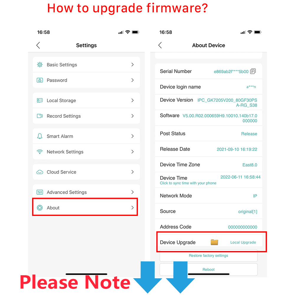 Если вашу камеру можно использовать в обычном режиме, не обновляйте версию прошивки камеры на своем телефоне, если у вас возникли проблемы, обратитесь в службу поддержки клиентов!