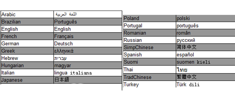 Русский, английский, корейский, итальянский, португальский, испанский, французский, немецкий и т. Д.