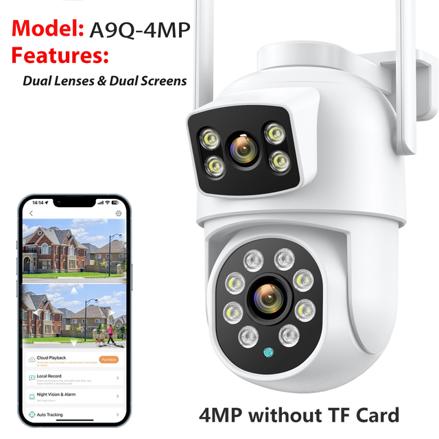 9-мегапиксельная PTZ-камера с Wi-Fi, двойной экран, 8-кратный цифровой зум, обнаружение человека, наружная охранная защита, IP-камера видеонаблюдения iCSee
