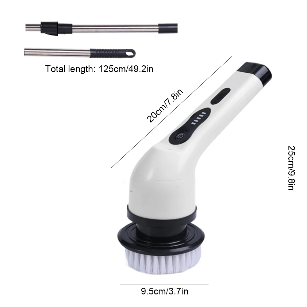 2. Универсальная Чистящая способность:Наш Электрический скруббер поставляется с различными щеточными насадками, что делает его идеальным для различных поверхностей и мест в вашем доме. Будь то ванны, плитка, раковины, туалеты, дверные направляющие или душевые окна, наша щетка обрабатывает их все. Регулируемая и расширяемая функция позволяет достигать высоких и труднодоступных мест без использования лестниц. Будьте готовы к любому сценарию очистки с помощью универсальности нашего электрического скруббера.