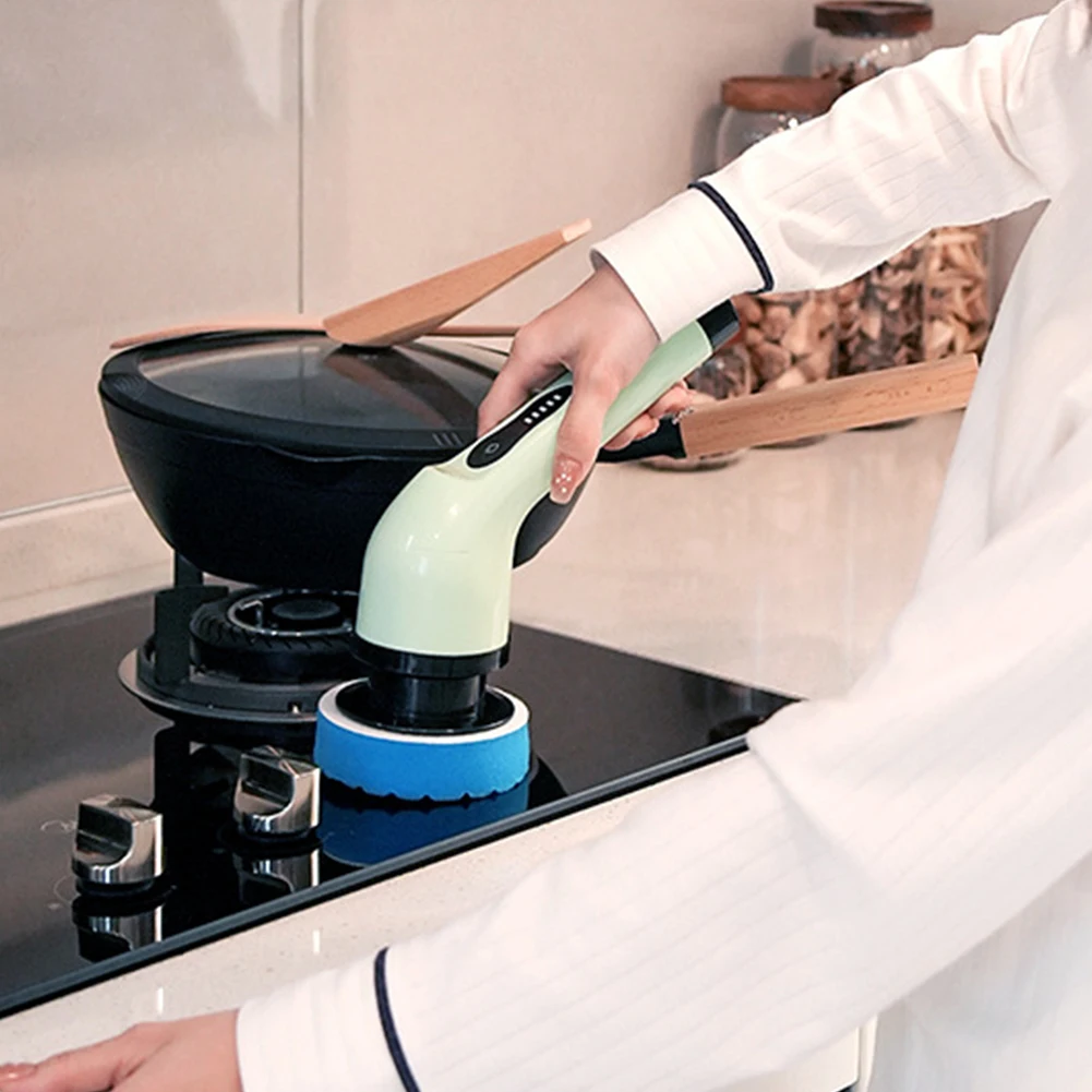 4. Подходит для кухни и дома:Этот Электрический щеточный очиститель идеально подходит для чистки кухонной техники, гостиных, ванных комнат, полов, плитки, мебели, скоплений жира, плит, сковородок, автомобилей и других мест. Он может эффективно помочь вам в выполнении различных задач по уборке.