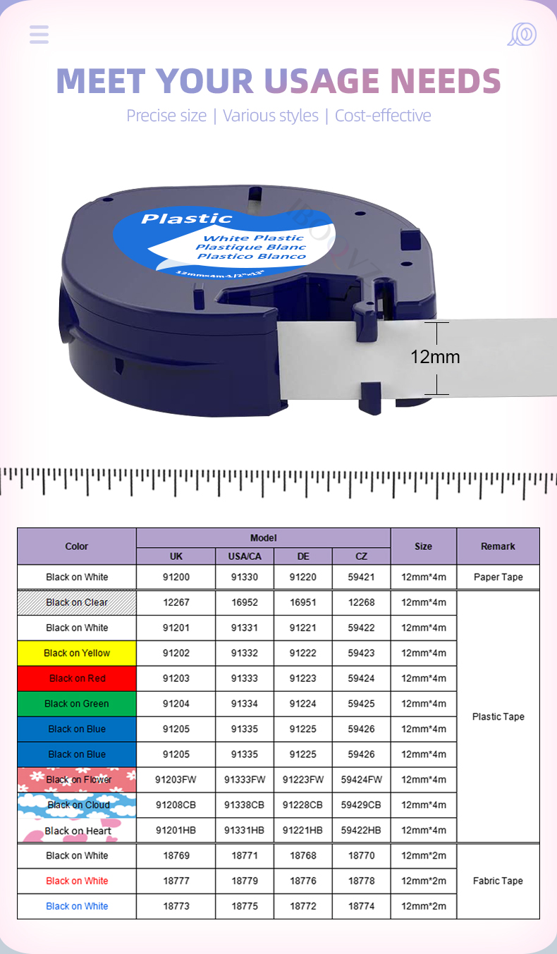 91201 91200 12 мм * 4 м, совместим с печатной меткой DYMO, лента для этикеток 12267 18771 91202 91203 91204 91205, пластиковая наклейка для принтера этикеток