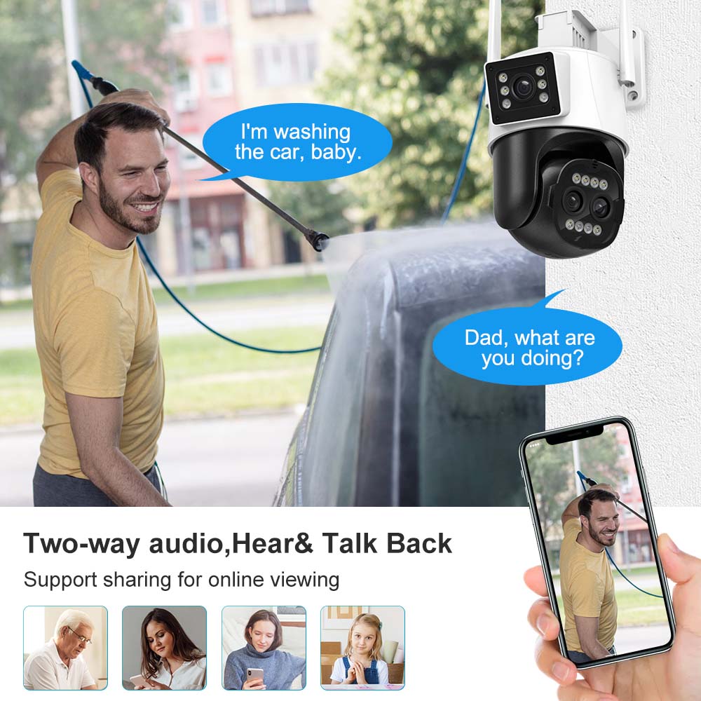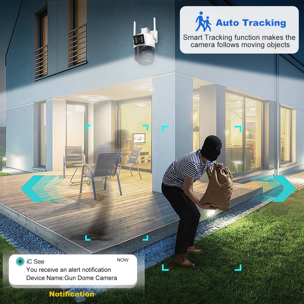 * С передовой технологией автоматического отслеживания AI, после блокировки цели видеокамера автоматически регулирует вращение панорамирования/наклона, отслеживая движущиеся объекты, автомобили, домашних животных, человека. Эта камера видеонаблюдения никогда не позволит вам пропустить ни одного важного момента.