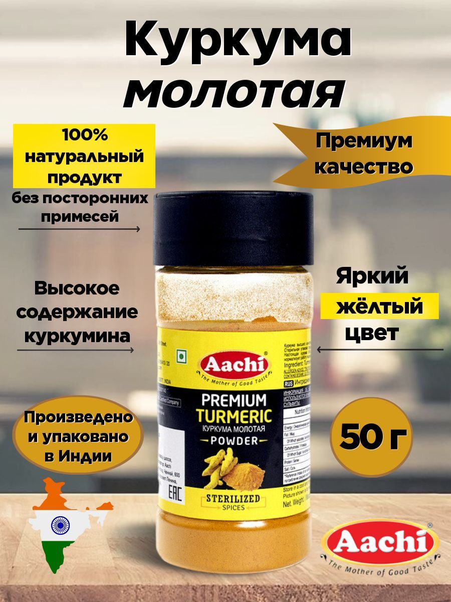 Aachi Куркума натуральная молотая индийская премиум качество (Turmeric Powder) 50 г