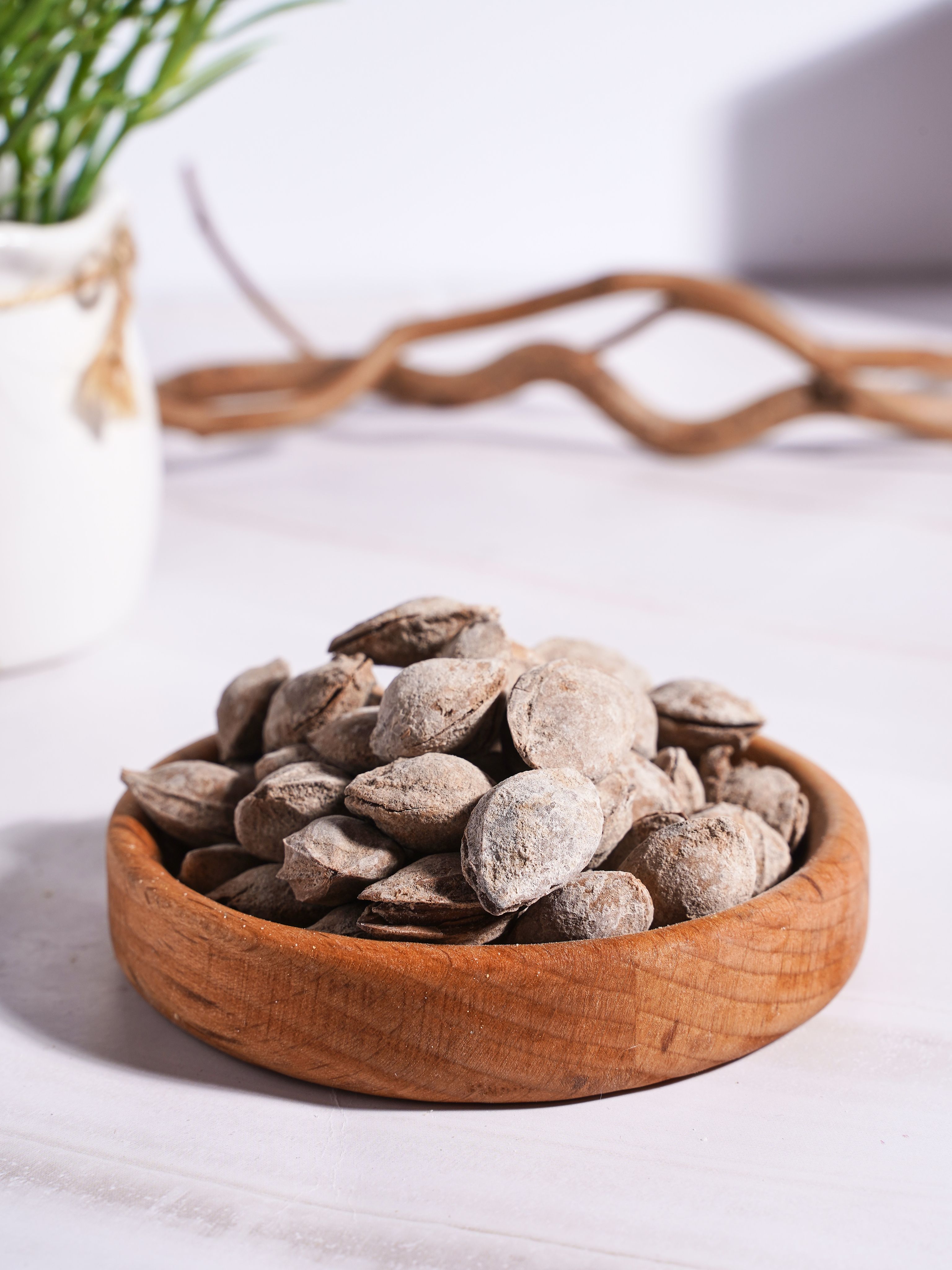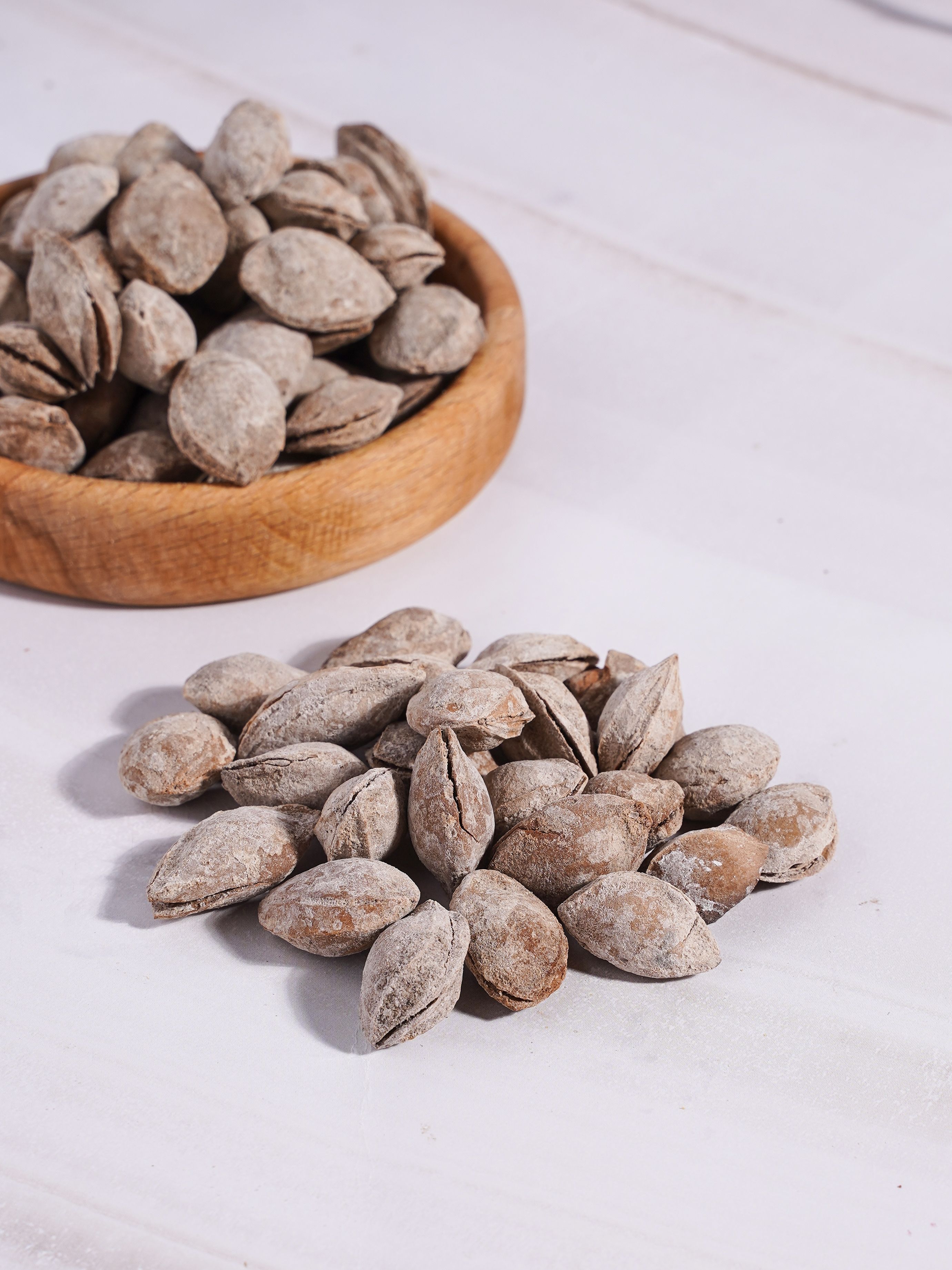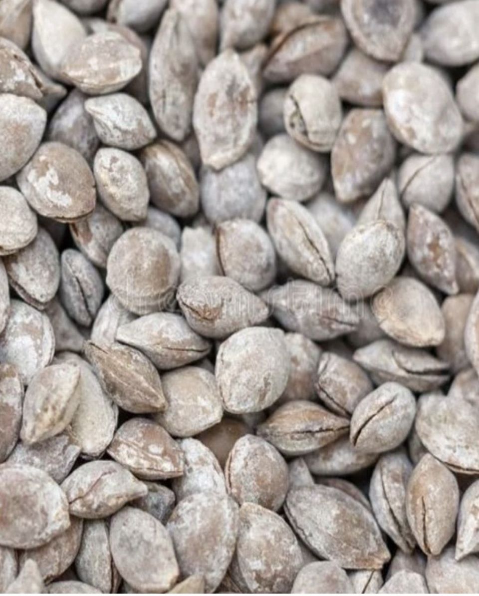 • Обработанные косточки проваривают в соленой воде. Далее в большом чане смешивают песок и косточки: на одно ведро косточек - одно ведро песка и ставят чан на огонь и там не менее 20 минут перемешивают, чтобы косточки равномерно прожарились. Следующий этап - это смешивание с мелом, в результате косточки становятся белыми. Для того, чтобы вытащить ядро из скорлупы нужно всунуть в трещинку половинку скорлупы уже открытой косточки и повернуть ее подобно рычагу, для этих целей можно использовать и нож, но он не всегда бывает под рукой.