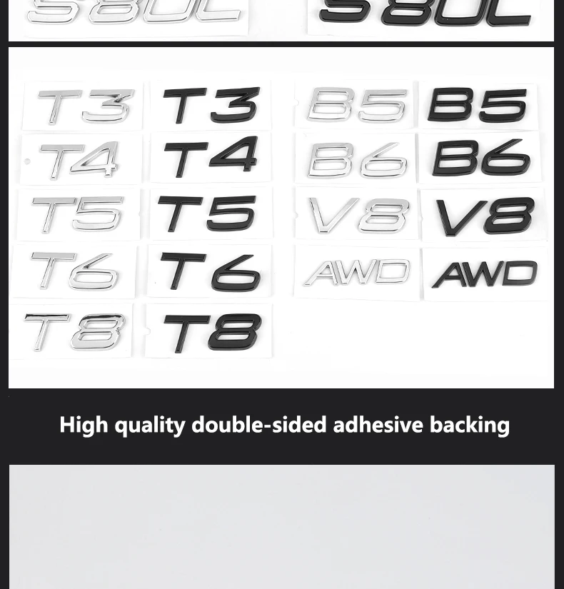 ABS буквенно-цифровой логотип T4 B5 T6 T8 V8 AWD значок на крышку багажника для Volvo S40 S60 S90 Автомобильная наклейка XC40XC60XC90 яркий черный хром