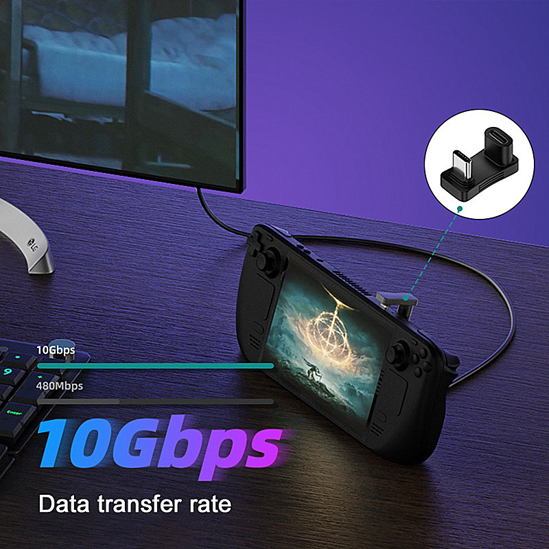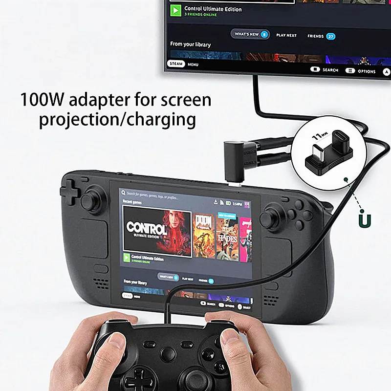 Адаптер 100 Вт Подходит для Steam Deck 2-в-1 удлинитель под прямым углом адаптер Type-C переходник «штырь-гнездо» Аксессуары для игровой консоли