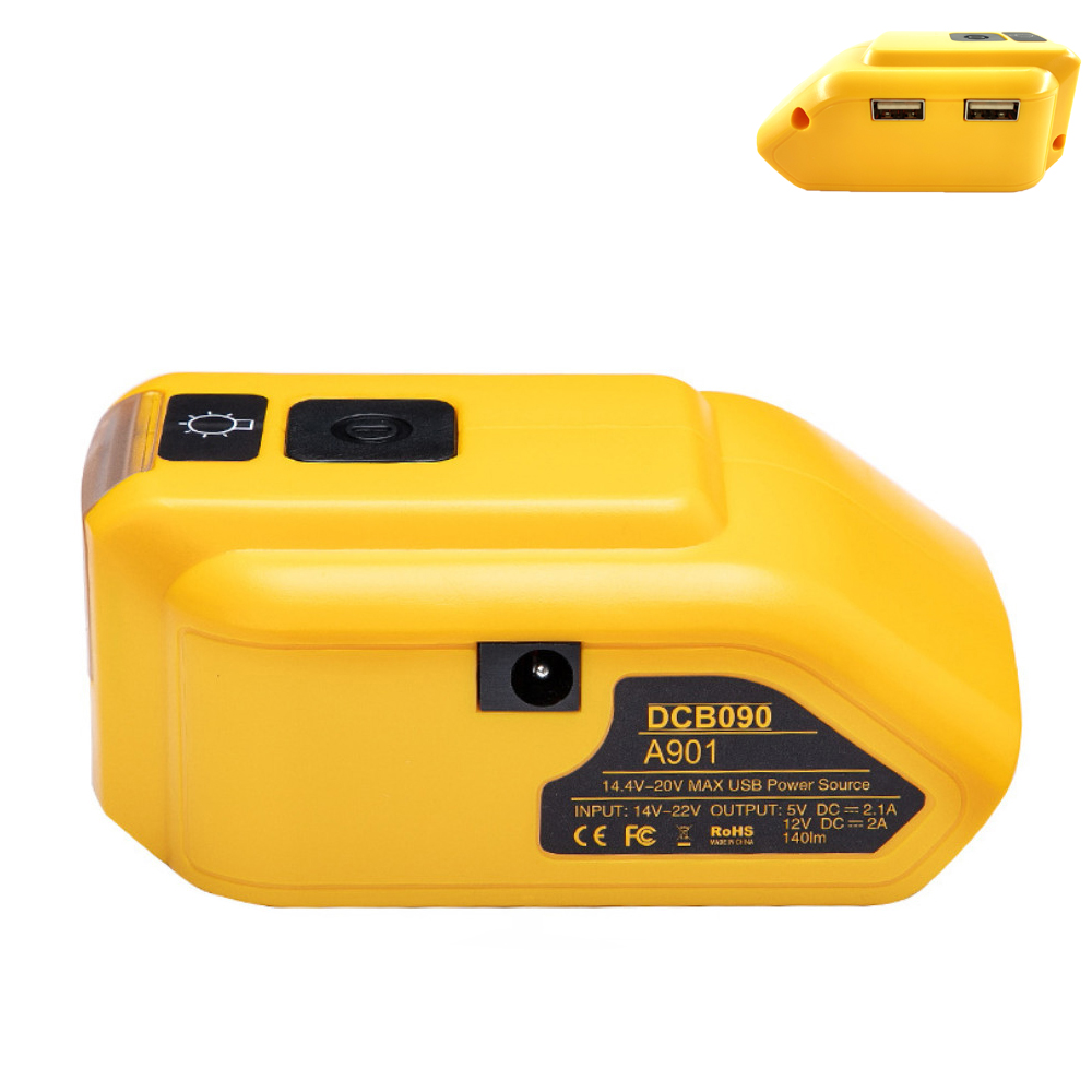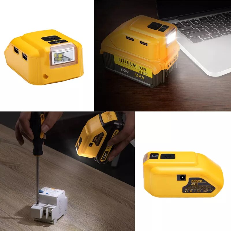 Аккумуляторный адаптер DCB090 для внешнего аккумулятора Dewalt 18V 20V с двойным USB Type-C DC Оригинальный сменный светодиодный Рабочий фонарь