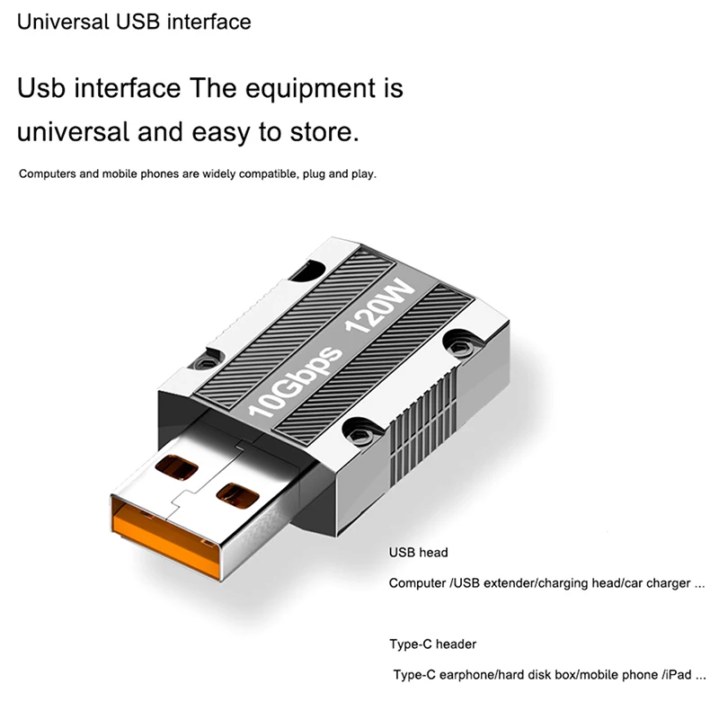 Адаптер для быстрой зарядки PD из цинкового сплава, 120 Вт, USB, OTG, 10 Гбит/с
