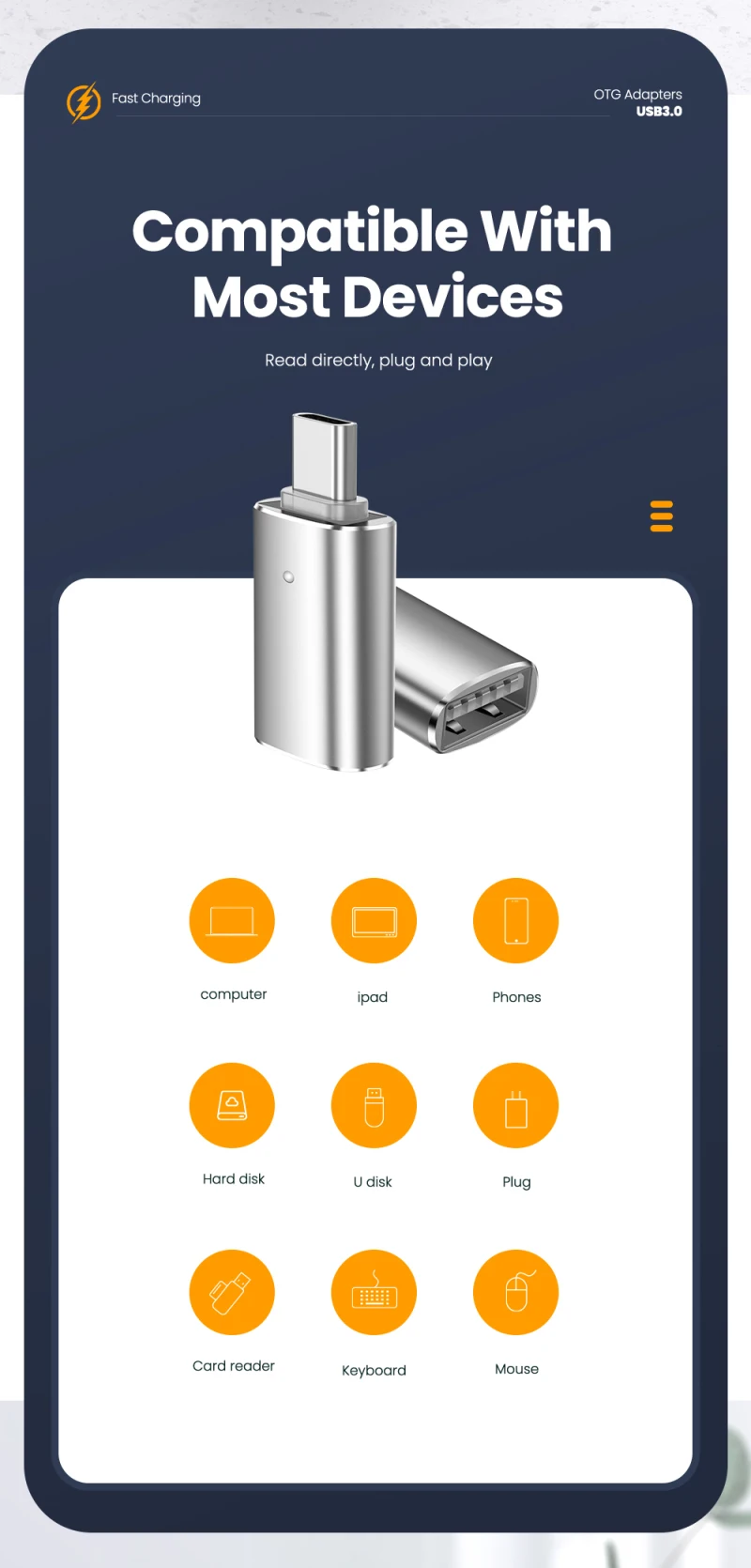 Type 3 Usb 3.0 Type-c Otg Adapter 3a