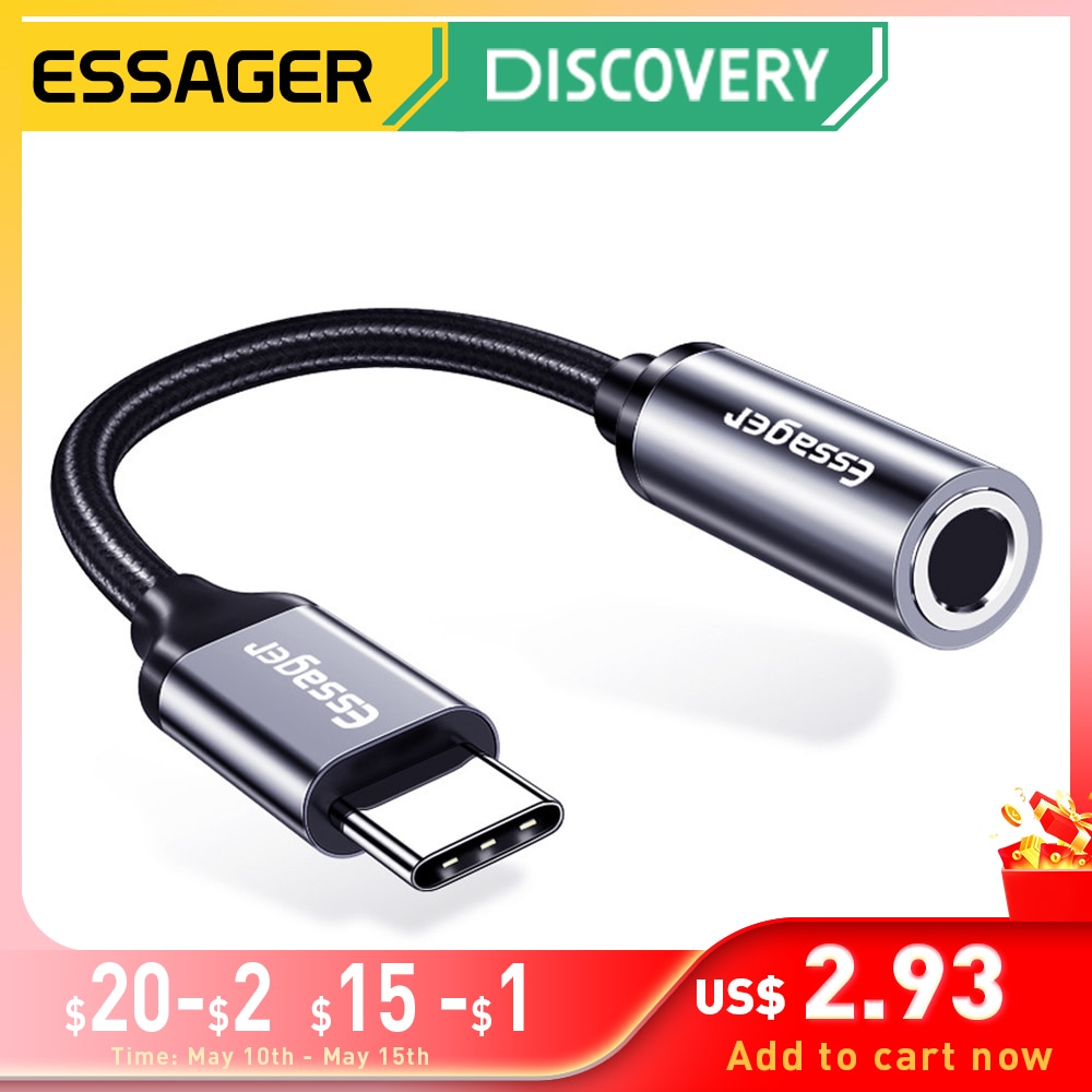 Адаптер для наушников Essager с разъемом USB Type-c на 3,5 мм, аудиокабель Aux 3,5 мм для Huawei P30 P20 Pro Xiaomi Mi 9 8 Oneplus 7 7t