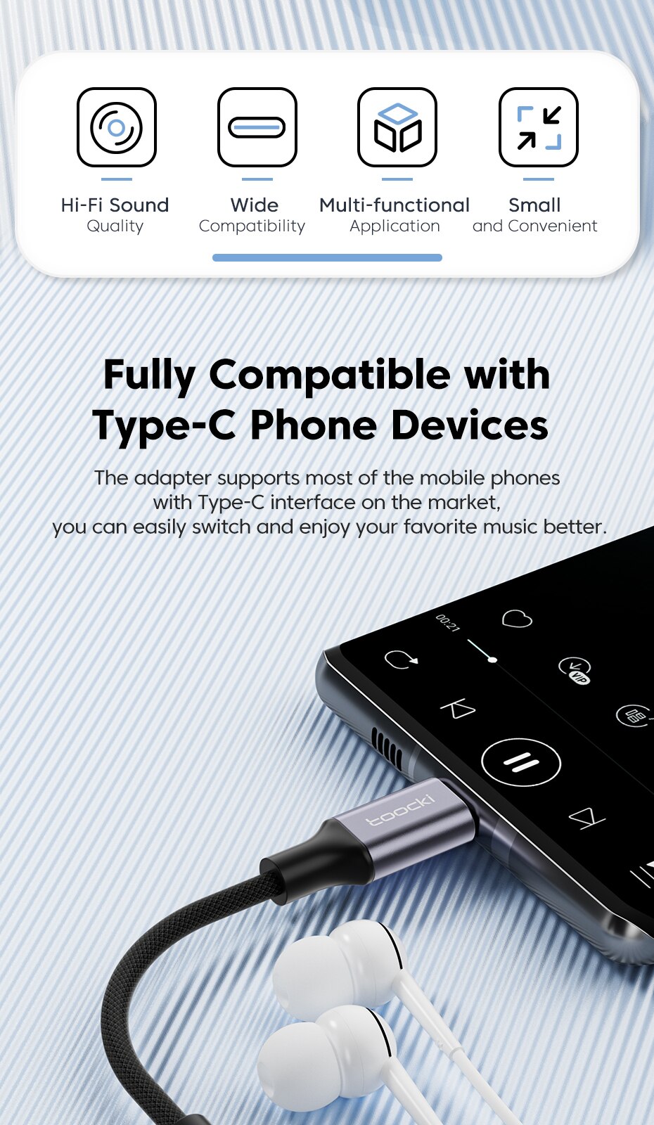 [Адаптер Aux с Type-C на 3,5 мм]Поддержка вызова/прослушивания/регулировки громкости. Качество звука Hi-Fi, интерфейс Type-C с мульти-совместимостью, многофункциональное приложение, маленькое и удобное.