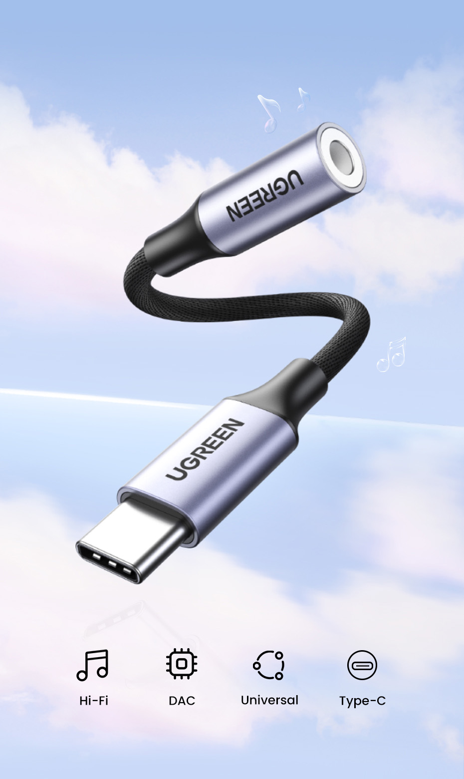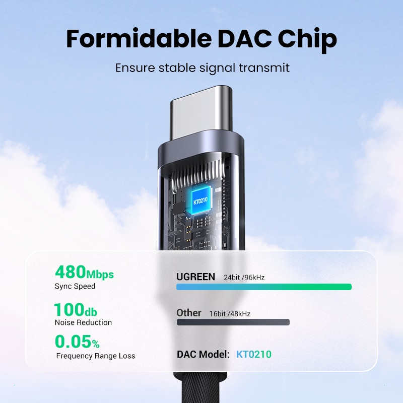 Адаптер для наушников UGREEN DAC Chip USB C на 3,5 мм