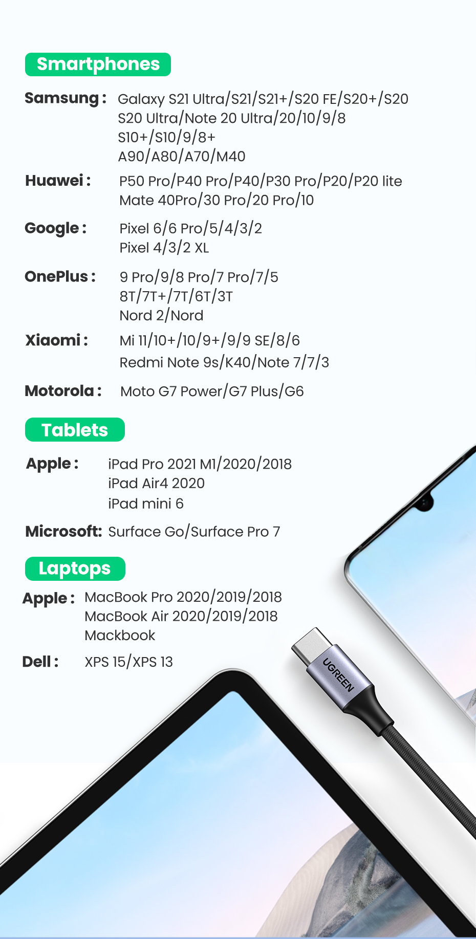 Поддержка: 98% портов USB TYPE-C для смарт-устройств, смартфонов/планшетов