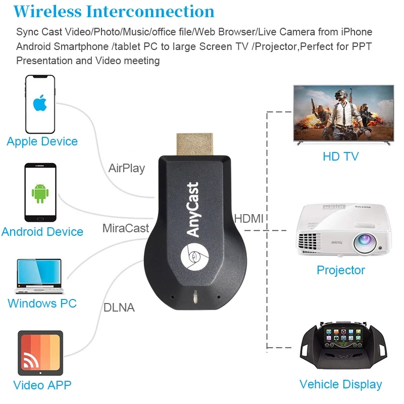 1. Aanycast используется для ЖК-телевизора/светодиодный телевизор, проектор, монитор с входом HDMI.