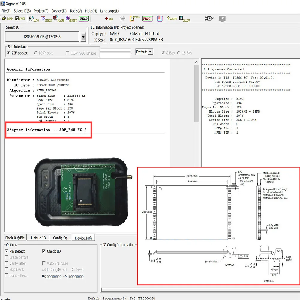 Обратите внимание: Этот адаптер Работает только на XGecu T48 программиста! Нельзя использовать этот адаптер для других программистов, таких как TL866CS, TL866A, TL866II или T56!