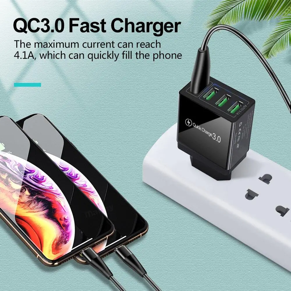 Адаптер для зарядки телефонов, быстрая зарядка, разъем USB 3.0, для iPhone, Samsung S10, S9, S8, Xiaomi Mi, Huawei