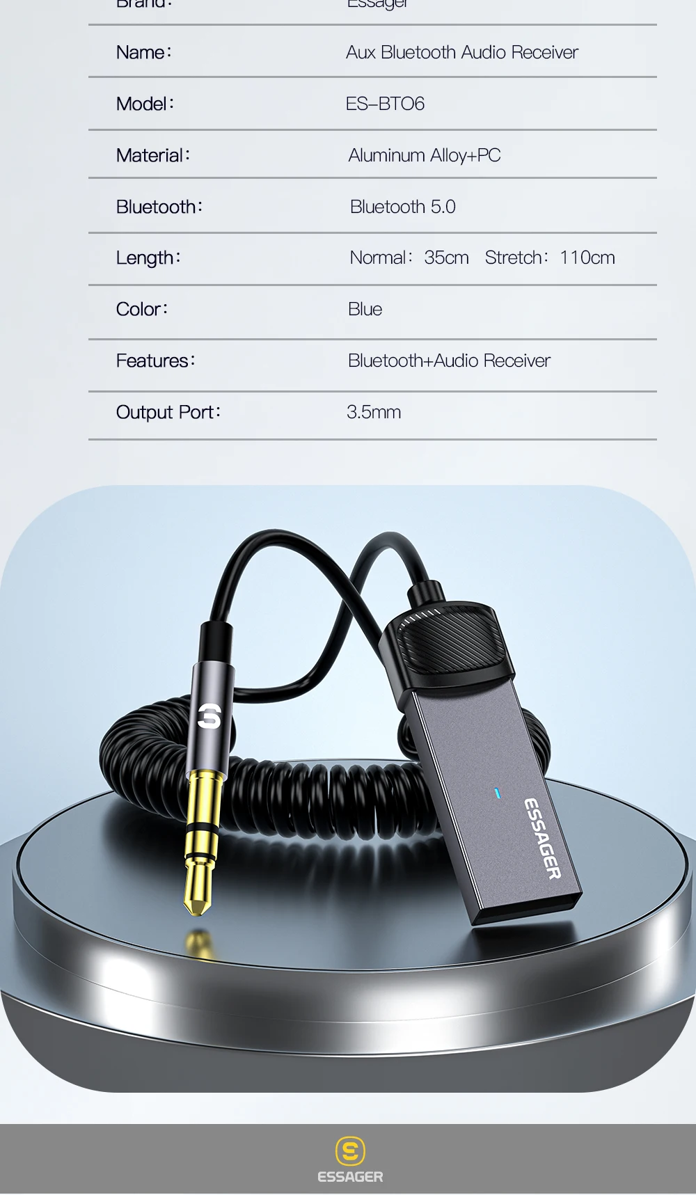 Адаптер Essager USB Bluetooth Aux, с USB на разъем 3,5 мм