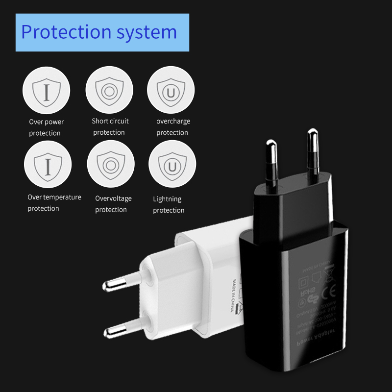 Новый адаптер ЕС 5В 2а USB ЗУ для мобильного телефона подходит для Италии Франции Германии CE сертификация два круглых ножных разъема черный белый