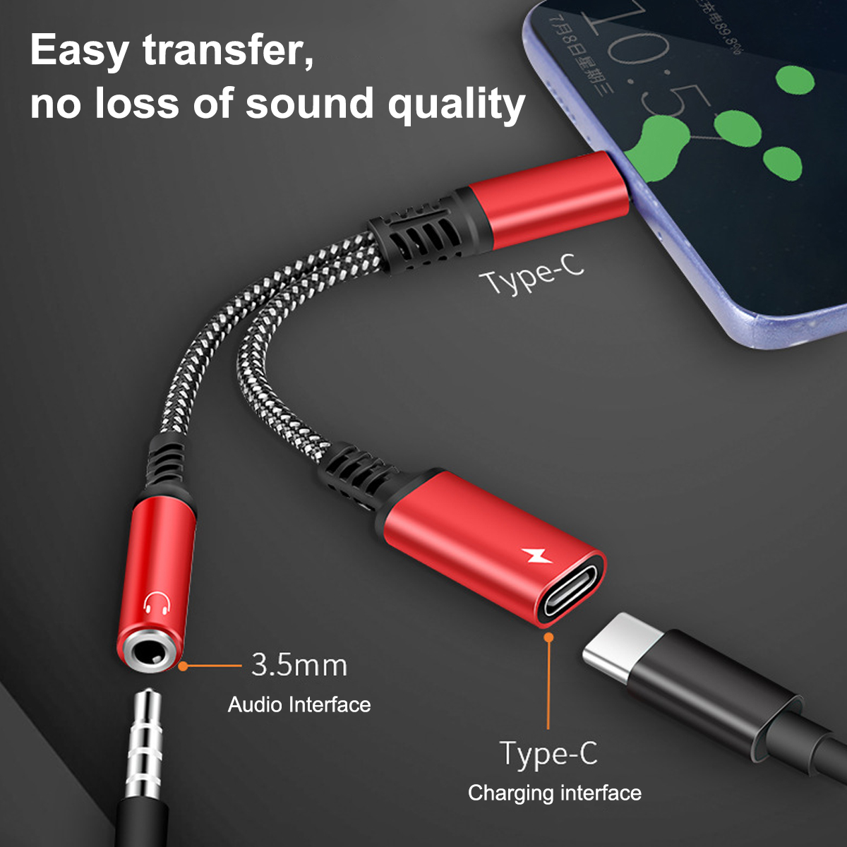 Адаптер FONKEN с USB C на USB C 3,5 мм, аудиокабель, кабель для наушников, конвертер для Samsung OnPlus Xioaomi Redmi, адаптер для зарядки