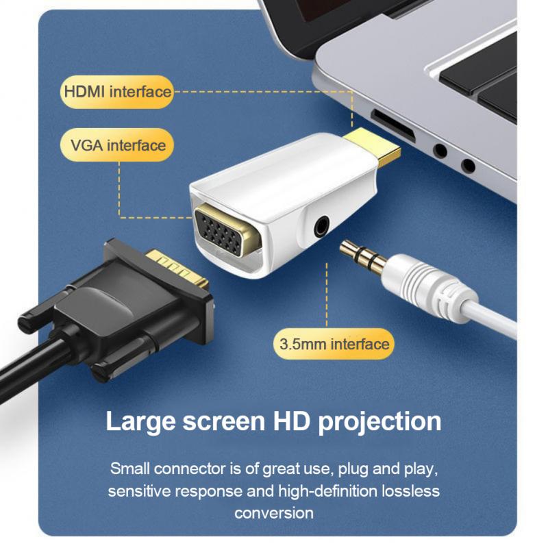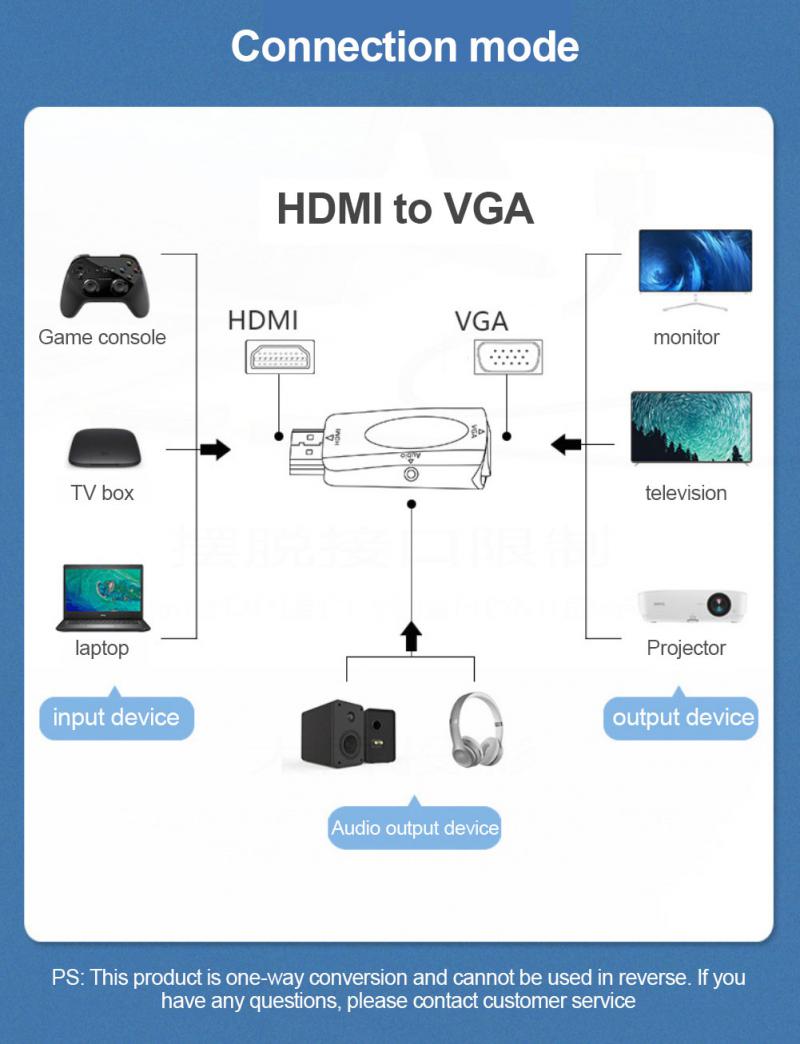 1. Этот продукт представляет собой портативный цифро-аналоговый преобразователь, который может быть преобразован в аудио и видео выход VGA путем определения входного сигнала высокой четкости в соответствии со стандартом.