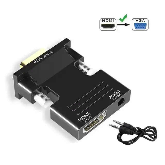 Адаптер HDMI-совместимый с женским и мужским разъемами VGA с аудиокабелем 3,5 мм для PS4 монитора проектора ПК ноутбука 1080P HD на VGA