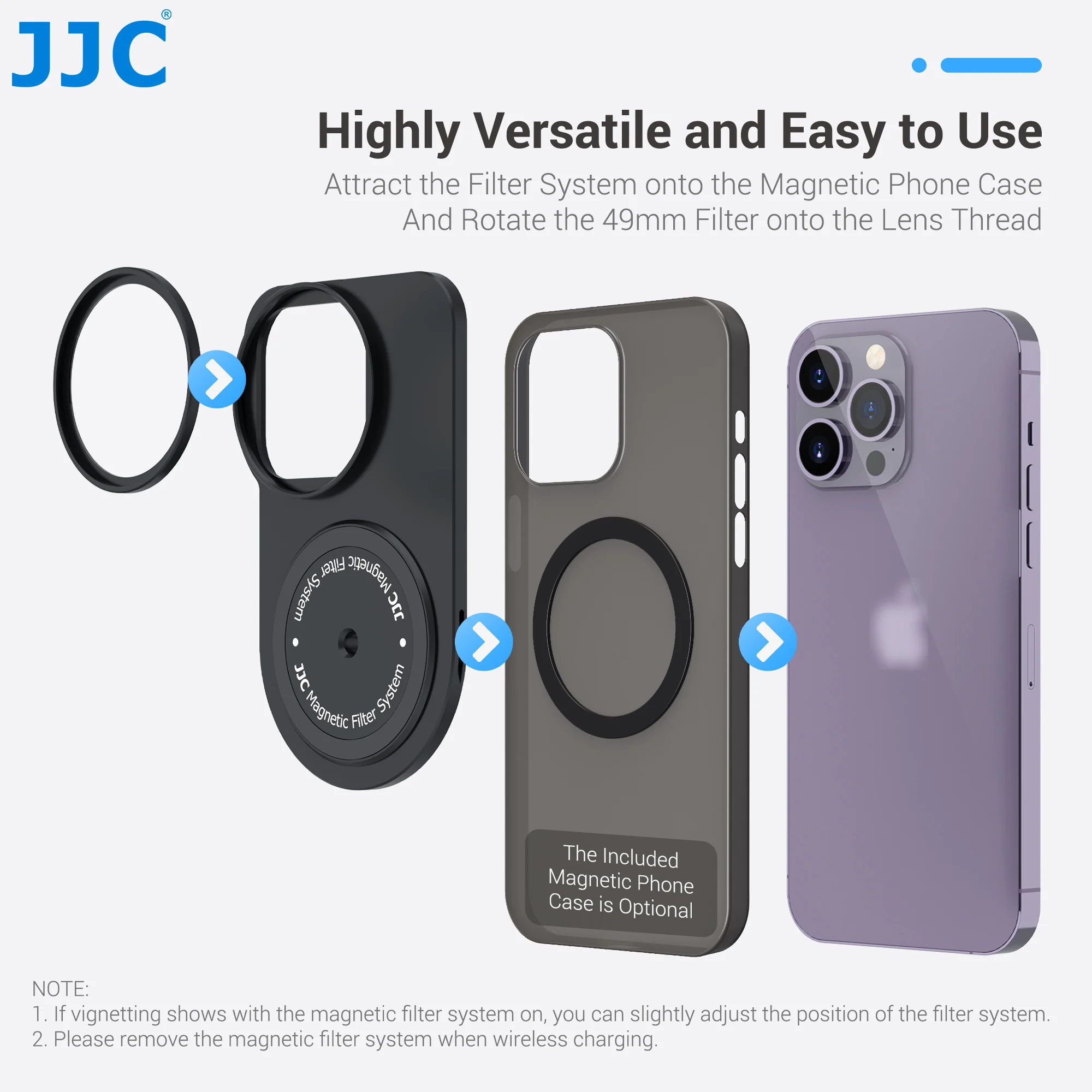 JJC MFS Series Magnetic Lens Filter Kit is specially designed for mounting any threaded 49mm filter over selected iPhone lenses for hassle-free enhancement of mobile videos and photography.