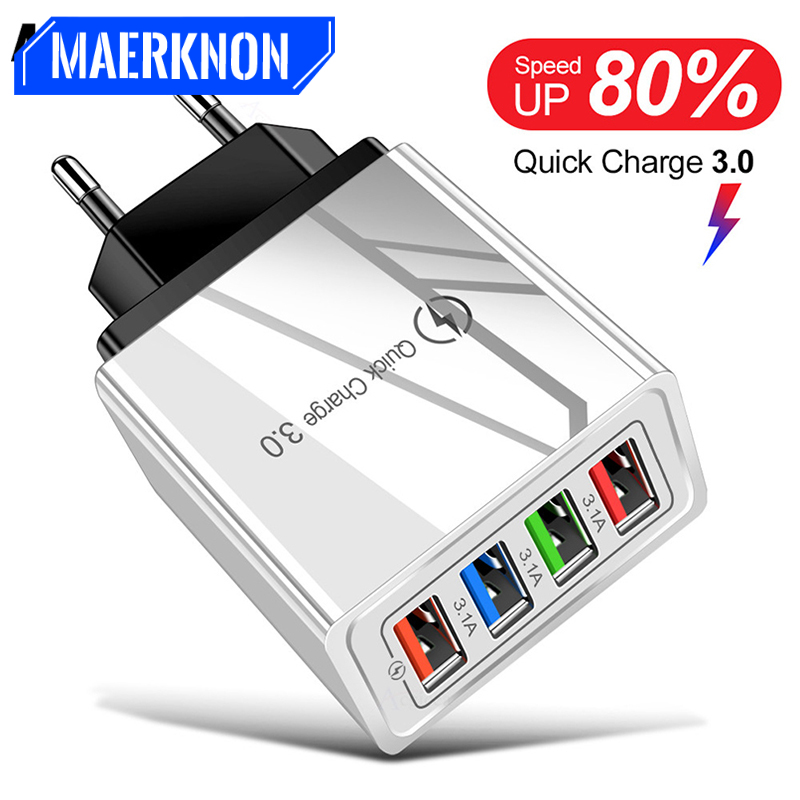 Адаптер питания Acgicea с 4 USB-портами и поддержкой быстрой зарядки 3.0, 45 Вт
