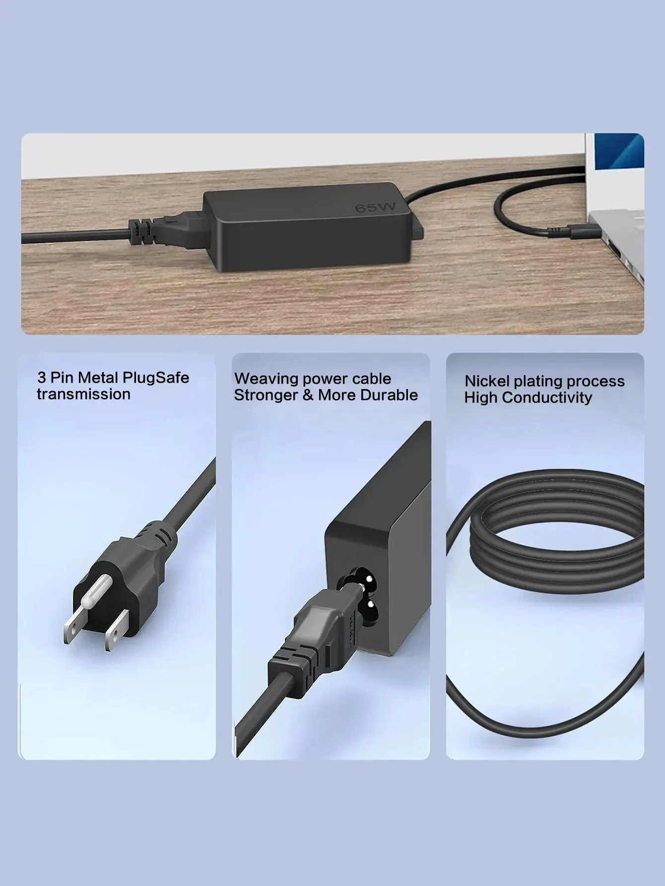 • Быстрая Зарядка:Адаптер питания 65WC может обеспечить быструю зарядку вашего ноутбука, гарантируя, что вы сможете использовать его в течение длительного времени, не беспокоясь о разрядке энергии.