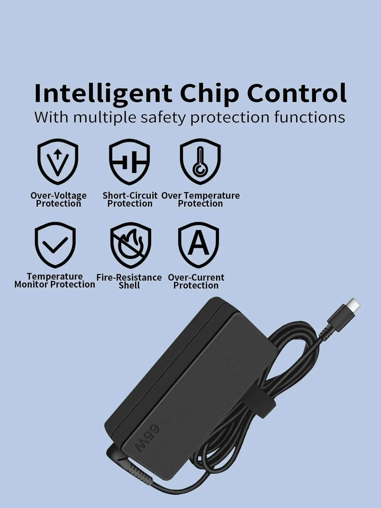 Адаптер питания для ноутбука Lenovo ThinkPad,Hp,Chromebook,Yoga,Dell, ASUS,Acer, Type C, 65 Вт
