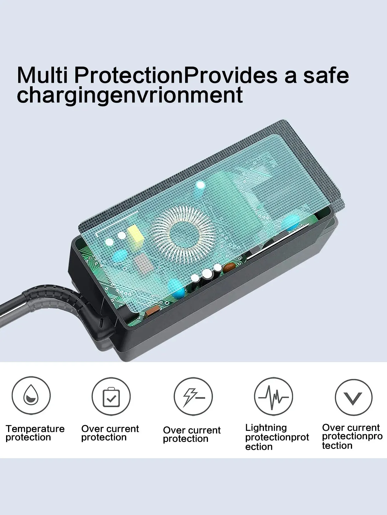• Защита в трех экземплярах:Это зарядное устройство поставляется с тройной защитой, включая защиту от перенапряжения, защиту от перегрузки по току и защиту от короткого замыкания, чтобы обеспечить безопасность вашего ноутбука во время зарядки.