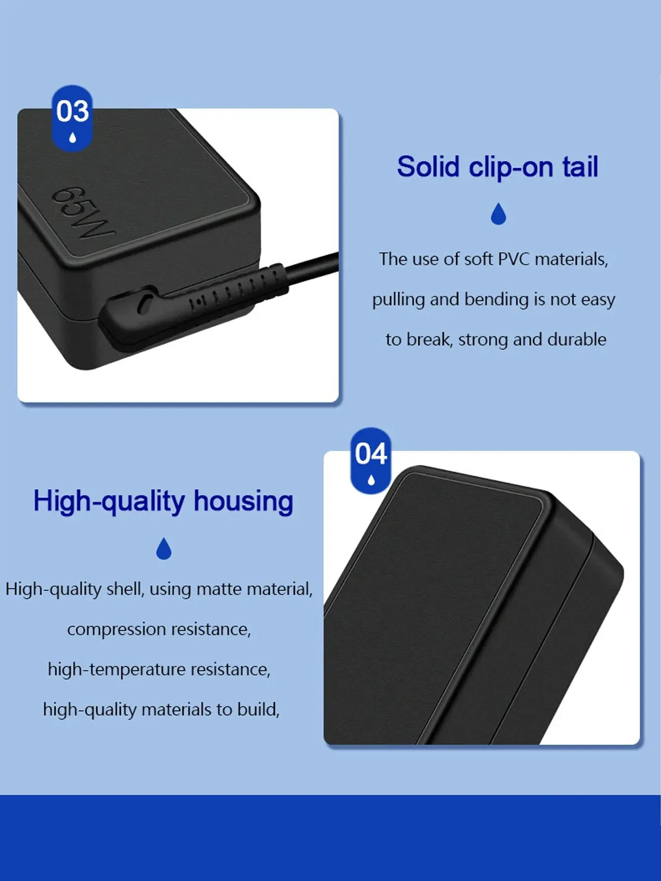 • Высокая Выходная мощность:Этот адаптер питания зарядного устройства для ноутбука с выходным напряжением 20 В и выходным током 3,25 А может обеспечить высокую выходную мощность для быстрой и эффективной зарядки вашего устройства.