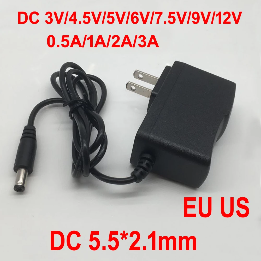 Адаптер питания переменного тока в постоянный, 1 шт., 100-240 В, для зарядного устройства 3 В, 4,5 в, 5 В, 6 в, 7,5 в, 9 В, 12 В, 5,5 А, 1 А, 2 А, 3 А, вилка европейского стандарта, США, 2,1 мм x мм
