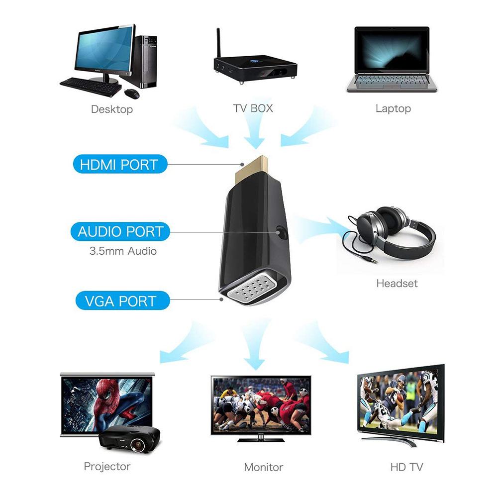 Преобразуйте полный HDMI-совместимый цифровой сигнал в VGA аналоговый сигнал.