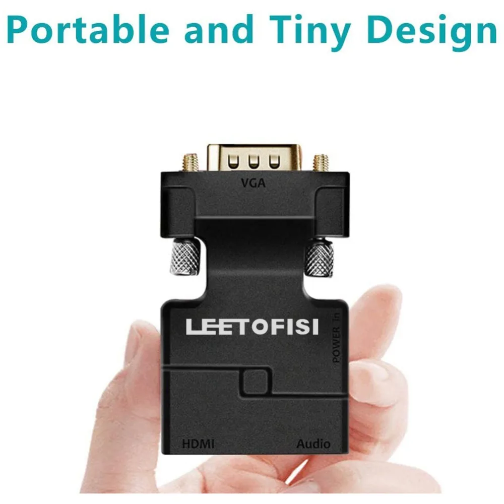 Конвертер адаптера LEETOFISI VGA в HDMI с аудио (выход источника VGA ПК на телевизор/монитор с разъемом HDMI), Активный Мужской VGA FOINNEX в женском HDMI 1080P видеодонгл Adaptador для компьютера, ноутбука, проектор