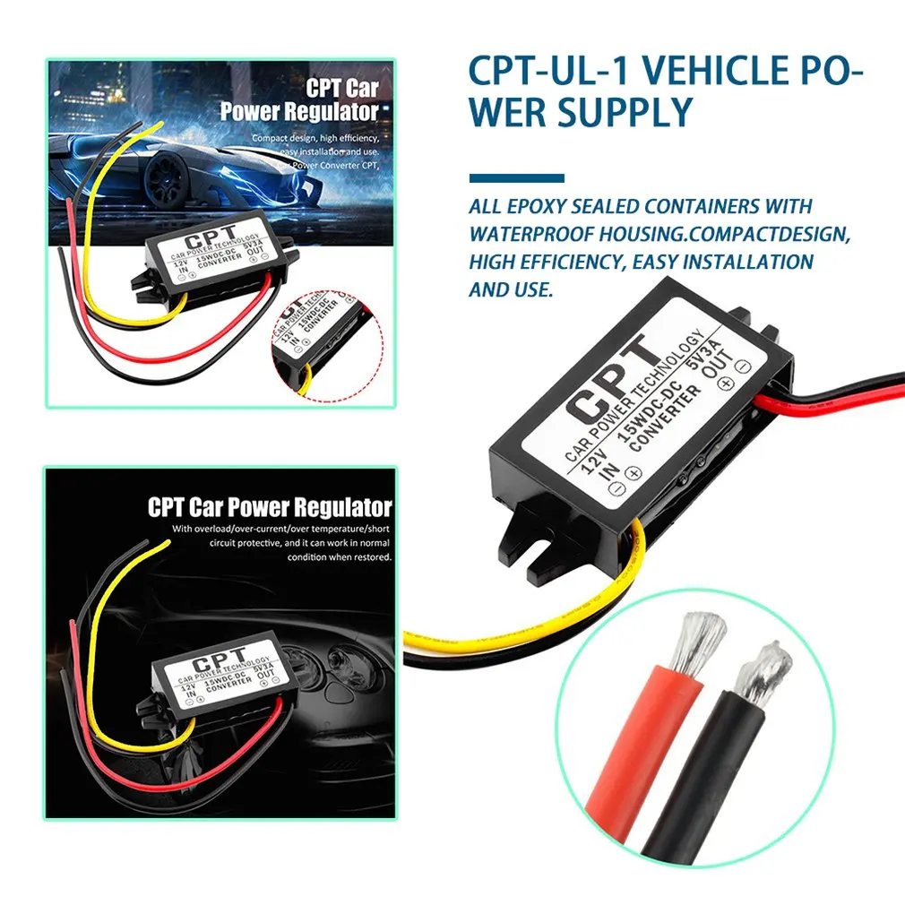 Адаптер регулятора для автомобильного видеорегистратора, GPS-навигатора, аудио, электроники для транспортных средств, 12 В постоянного тока в 5 В, 3 А, 15 Вт постоянного тока