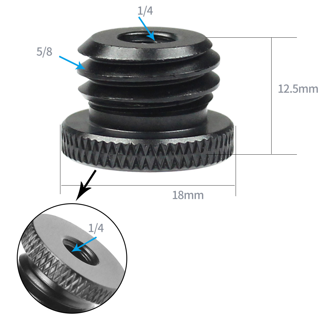 Особенности: материал из алюминиевого сплава, черный анодированный. Винт преобразования камеры с внутренней резьбой 5/8 в длину 1/4