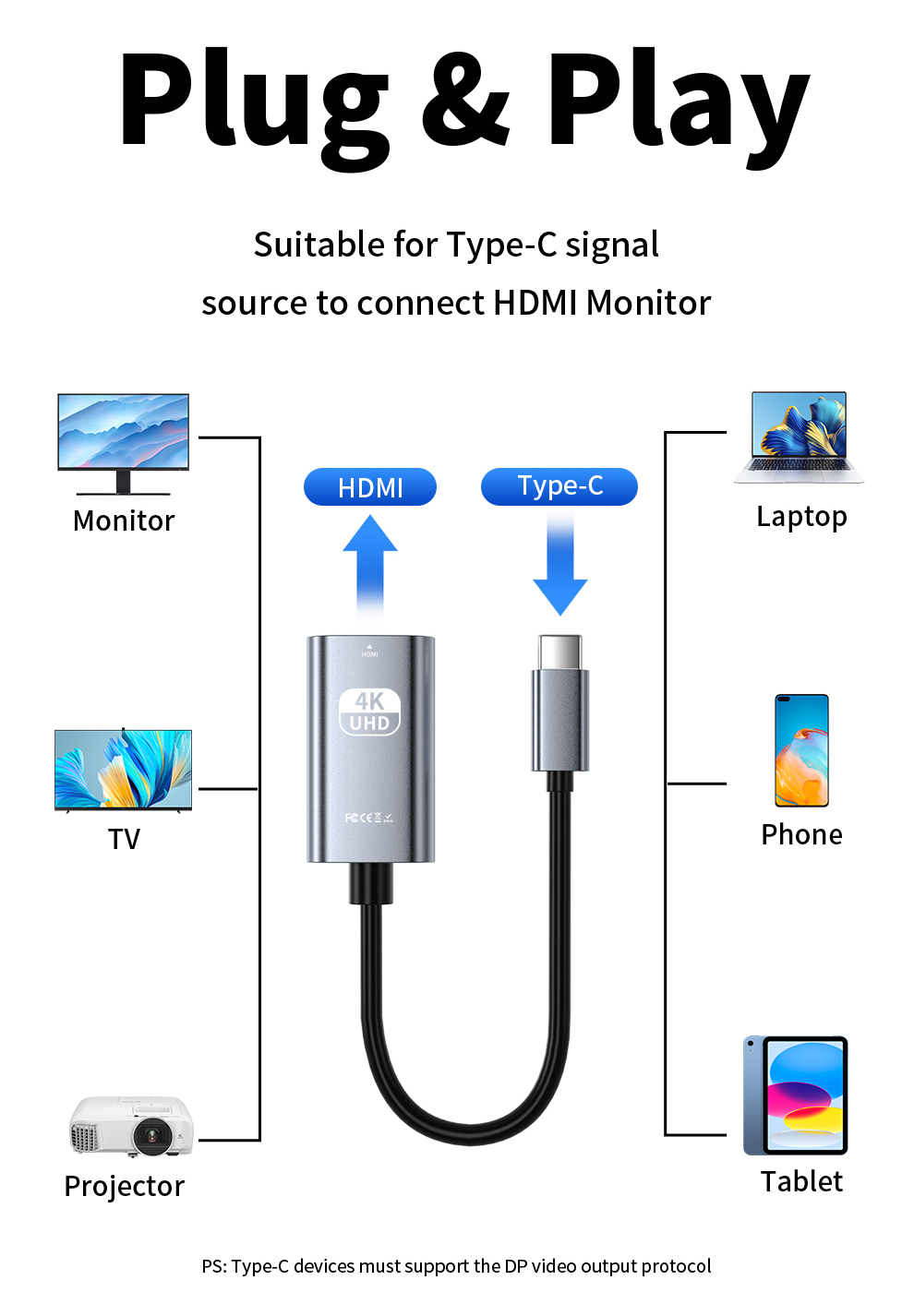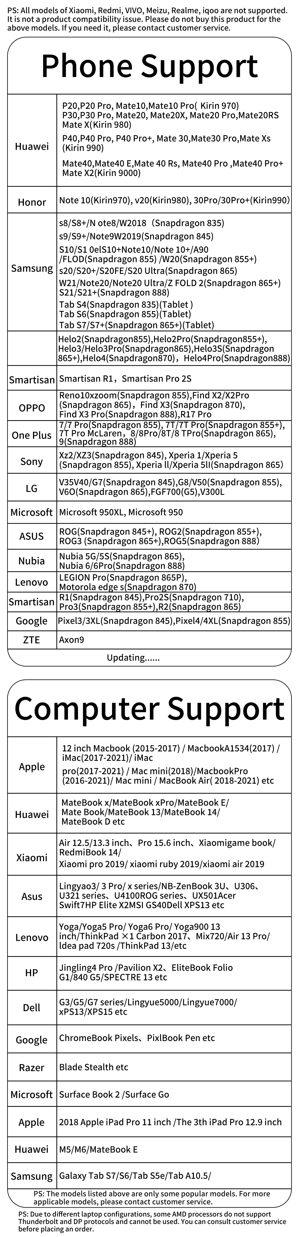 Перед покупкой убедитесь, что ваше устройство Type-C поддерживает функцию вывода видео. USB3.1 или USB3.2 или USB4 или Thunderbolt3 или Thunderbolt4 Поддержка вывода видео.