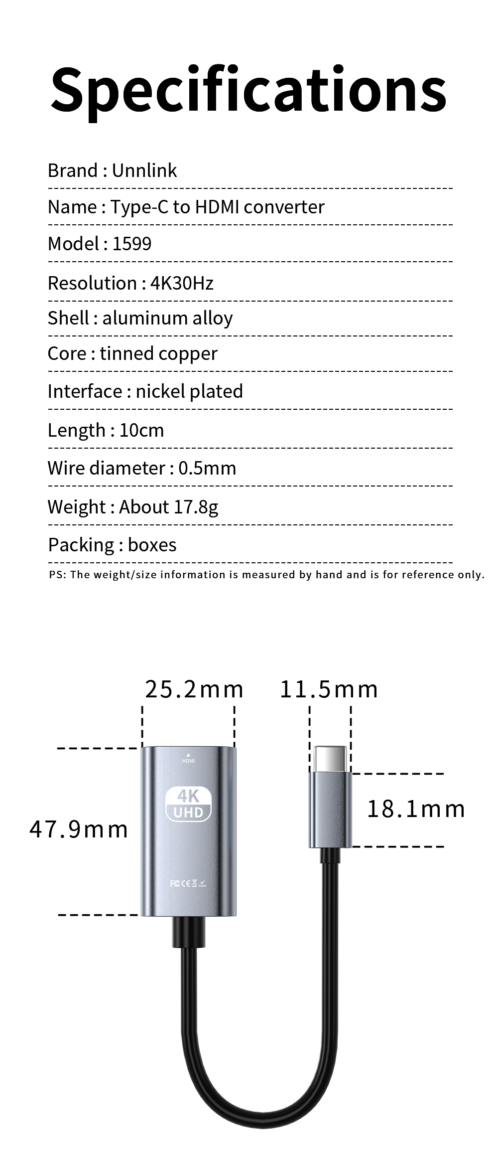 Адаптер Unnlink 4K, 60 Гц, USB C на HDMI, Type C, Thunderbolt 3 на HDMI, конвертер для Macbook SamsungLaptop, кабель для телефона на ТВ