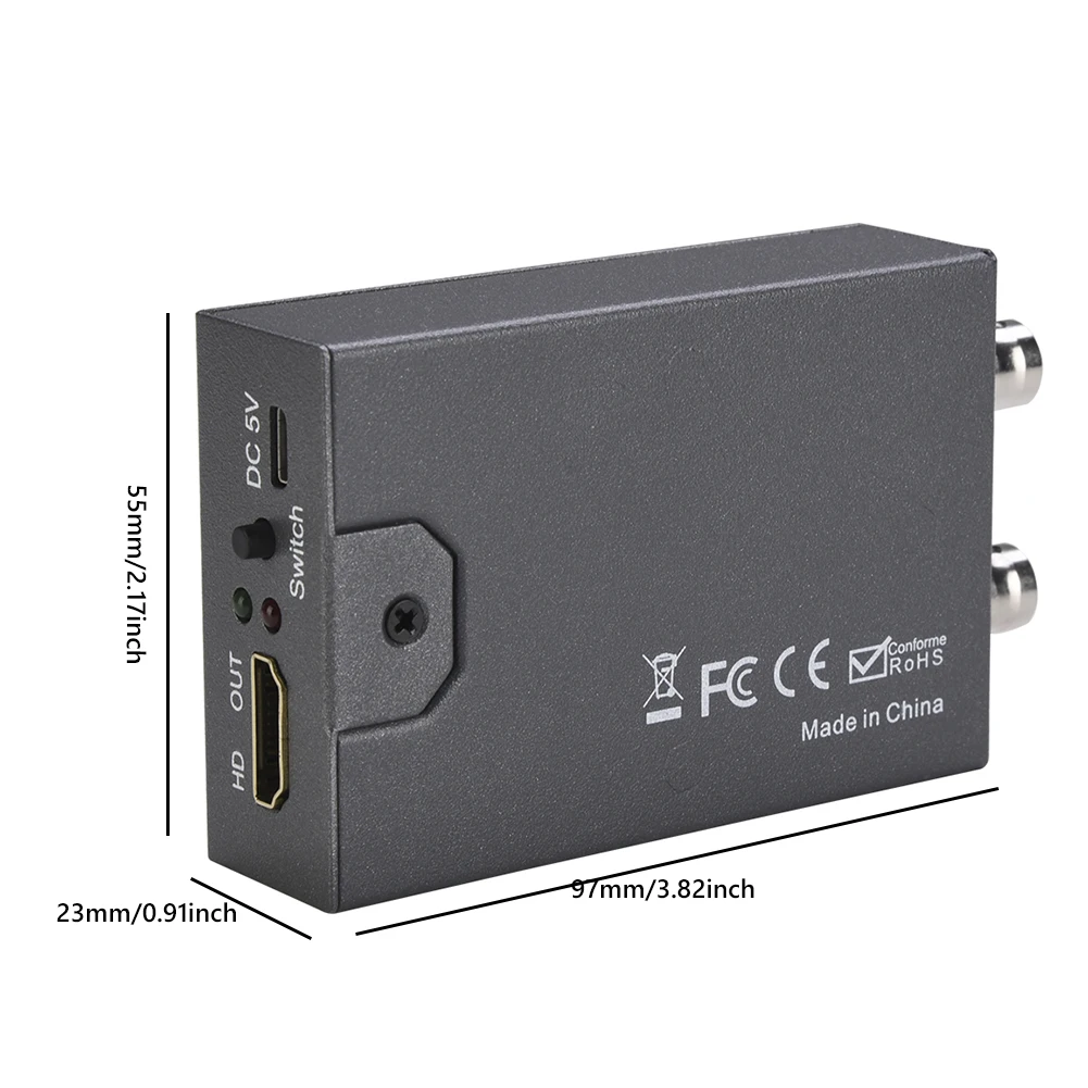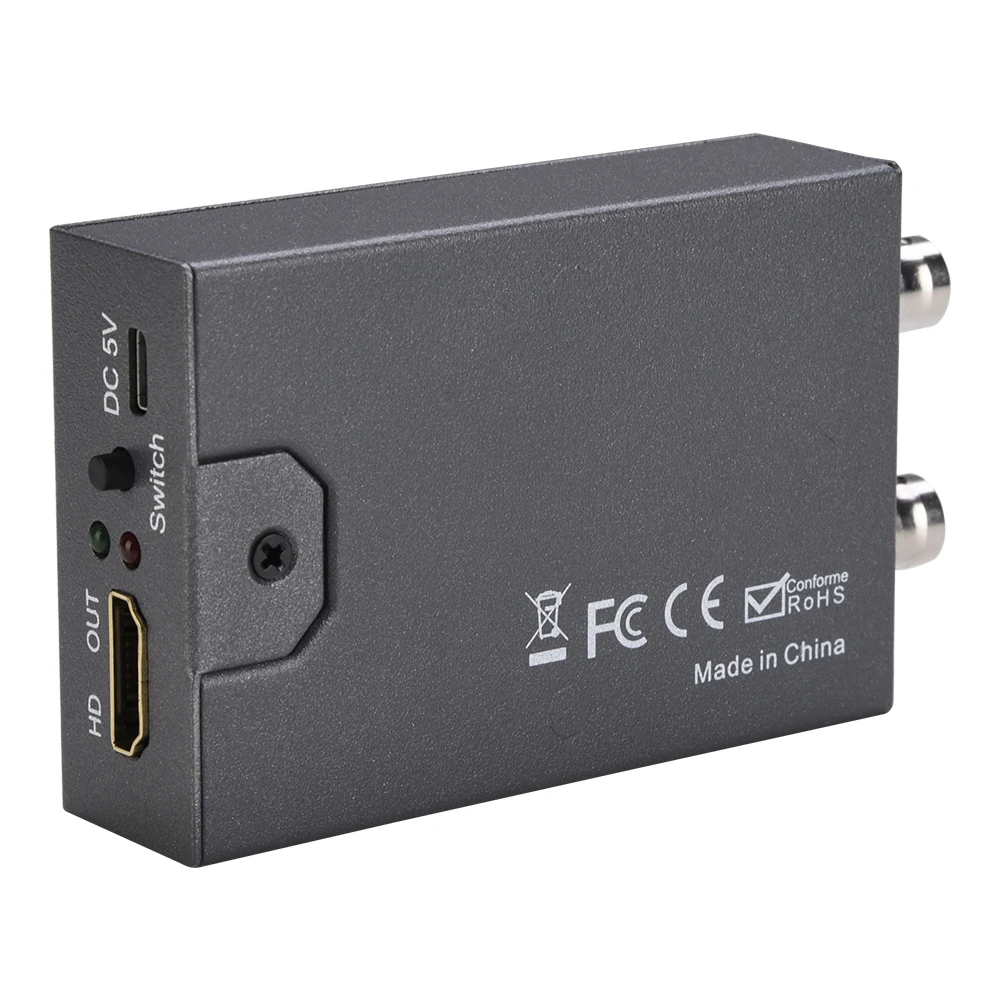 4. переключаемый HDMI-совместимый выход:Переключатель на адаптере сигнала может изменить выход, совместимый с HDMI, на 720P или 1080P. Когда питание отключено, он сохраняет текущий выходной формат, совместимый с HDMI.